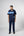 Navy blue cuban collar resort shirt with denim patch and contrast stitch detail.