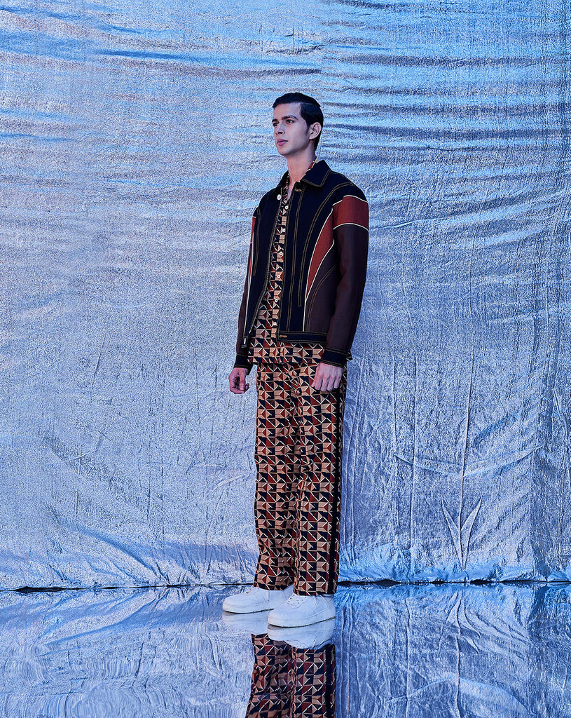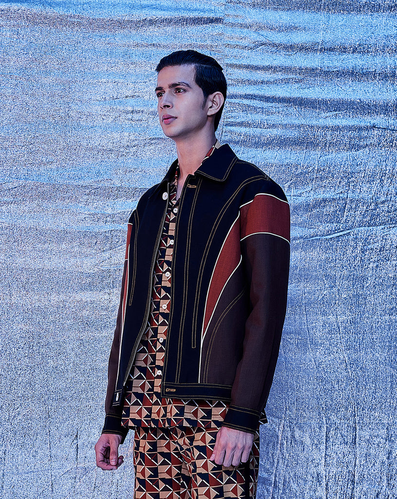 Arch cut and sew bomber with stitchline detailing and concealed placket
