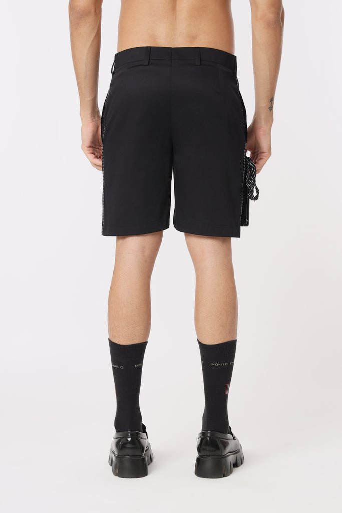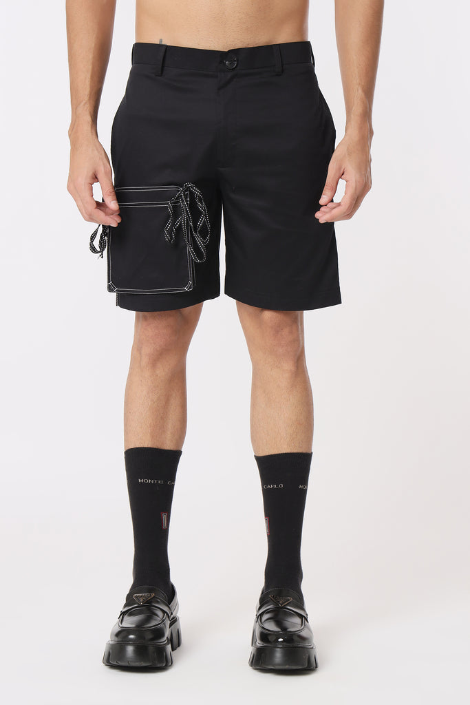 Cotton satin shorts with cotton tape details on side seam and detachable pocket