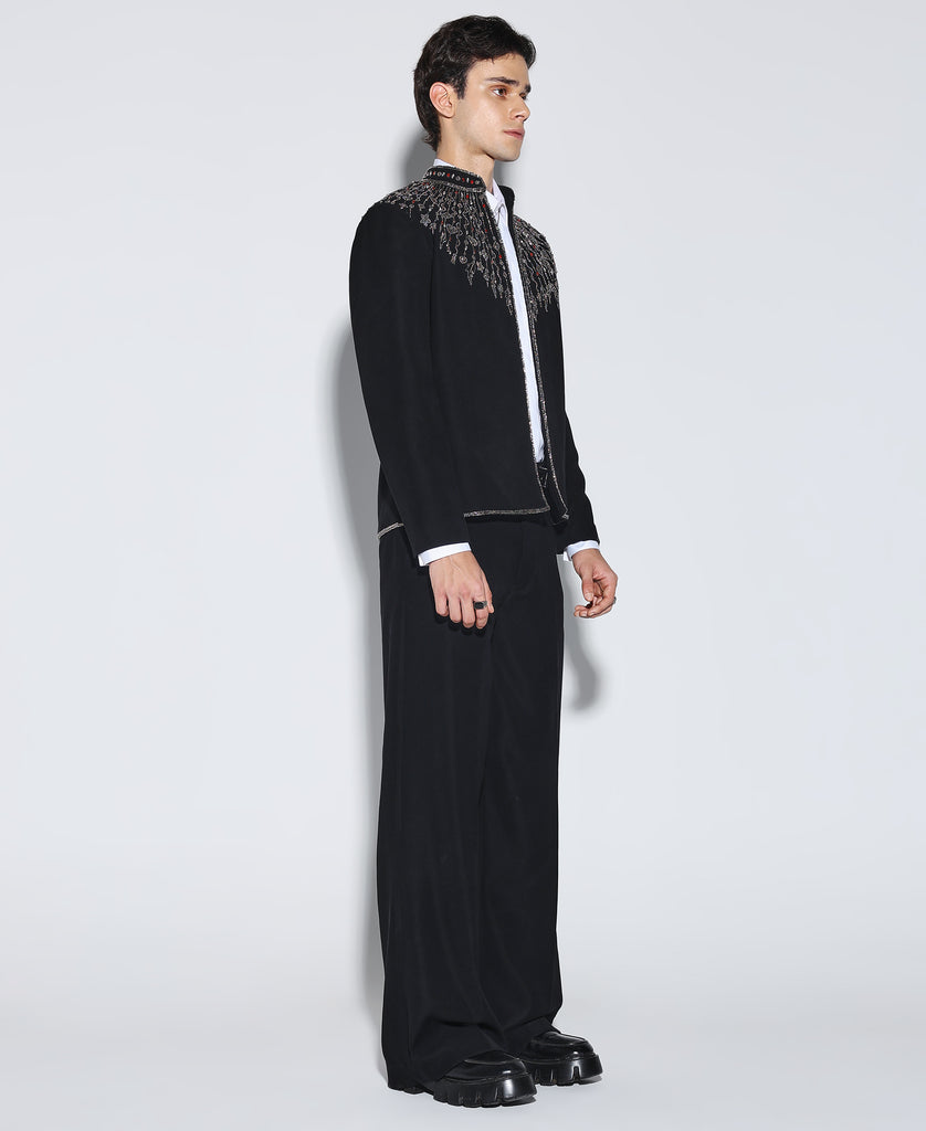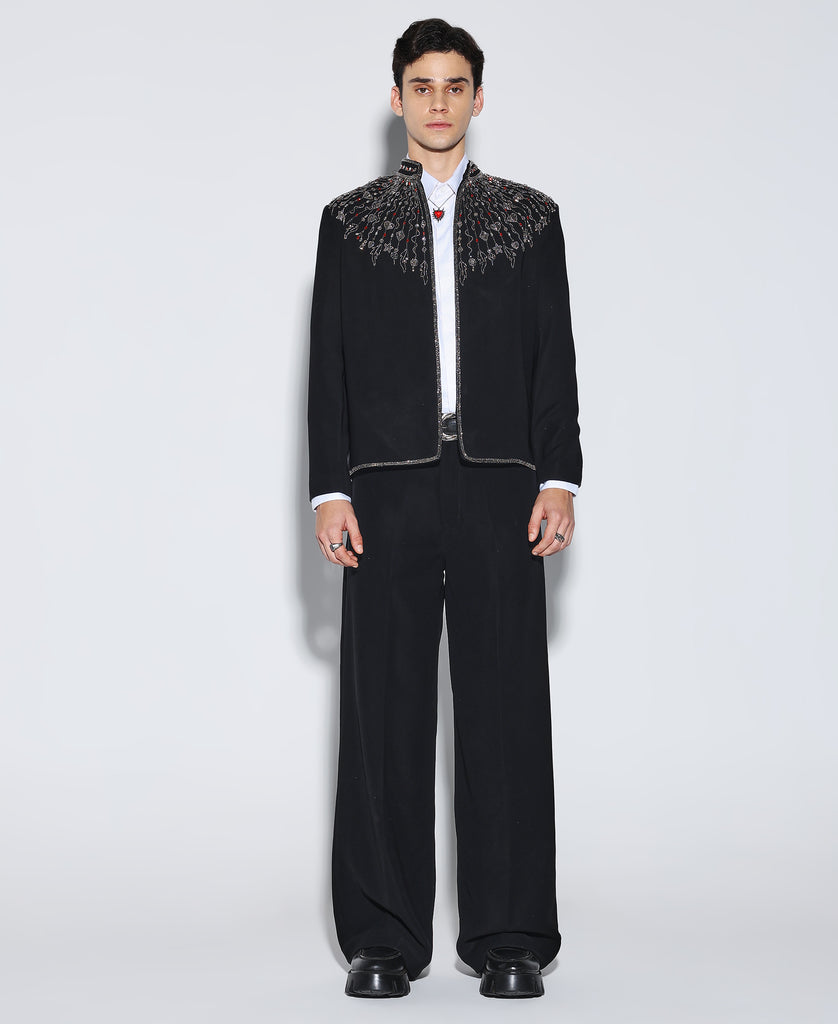 Embellished jacket with a structured fit. Make a statement in our ‘ Orion’ Jacket. Pair it with matching pants to complete the look.