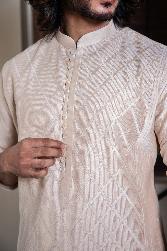 PEARL WHITE PINTUCK KURTA WITH MOTHER OF PEARL BUTTON DETAILING IN THE PLACKET