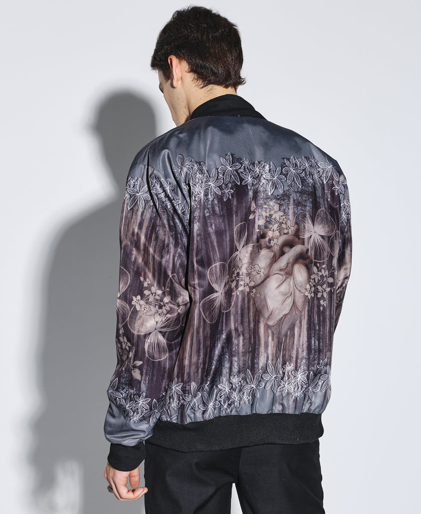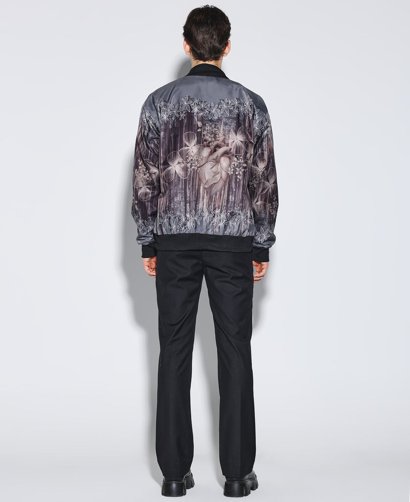 Digitally printed bomber jacket featuring anatomical heart abstract on the back. Finished with our signature Logocentric lining underneath. This might just be your new favourite jacket.