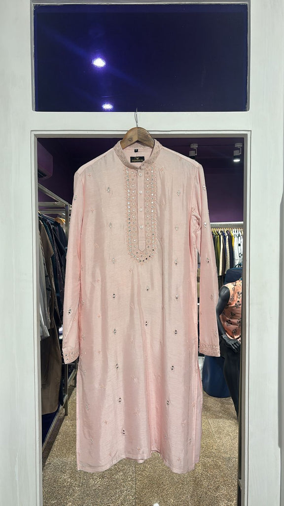 Baby Pink Kurta with Mirror and Hand Embroidery – Curato