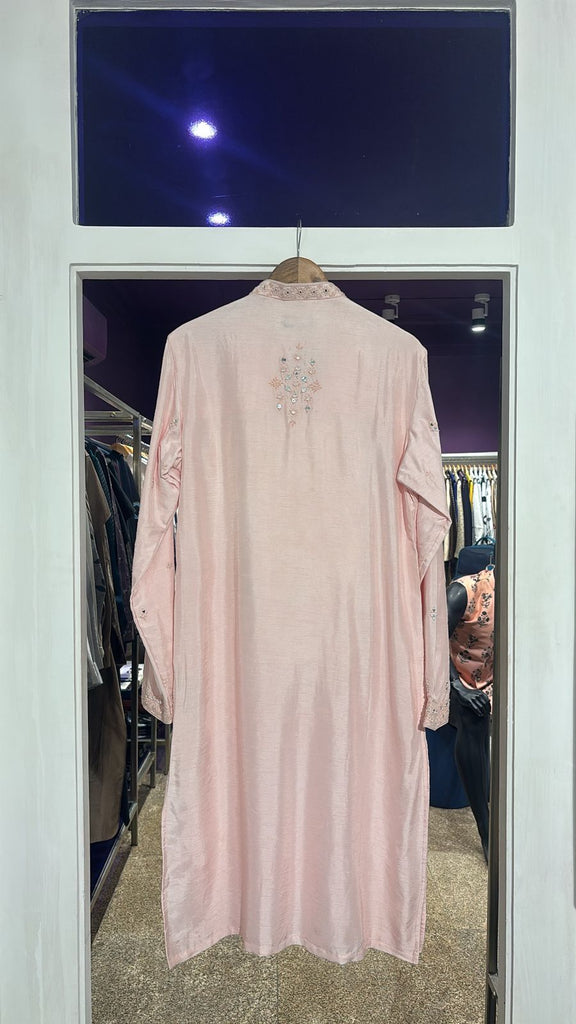 Baby Pink Kurta with Mirror and Hand Embroidery