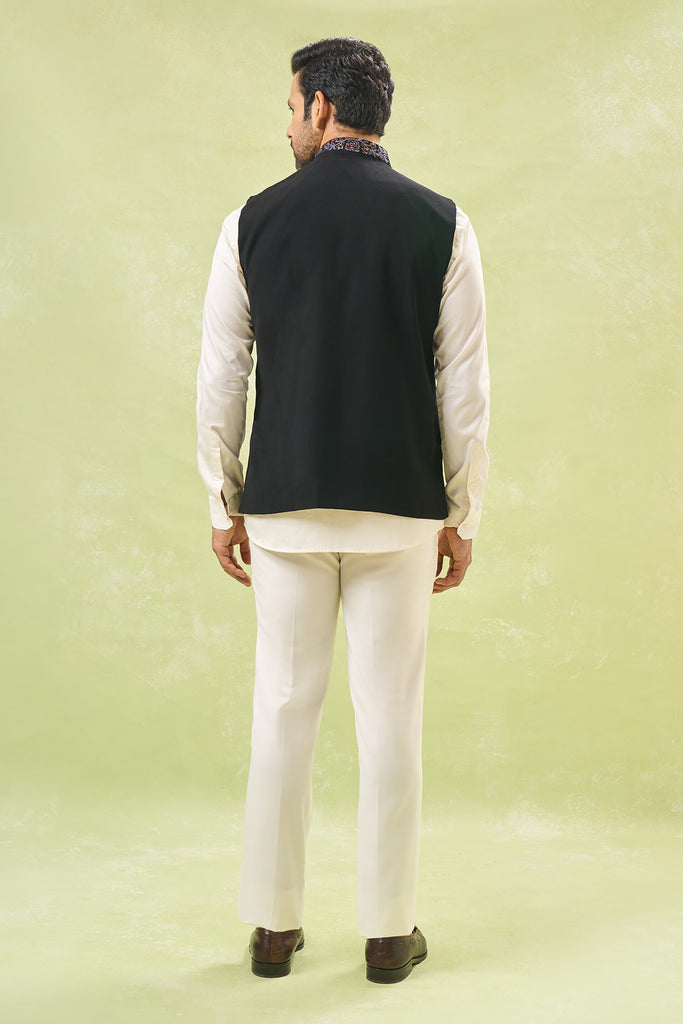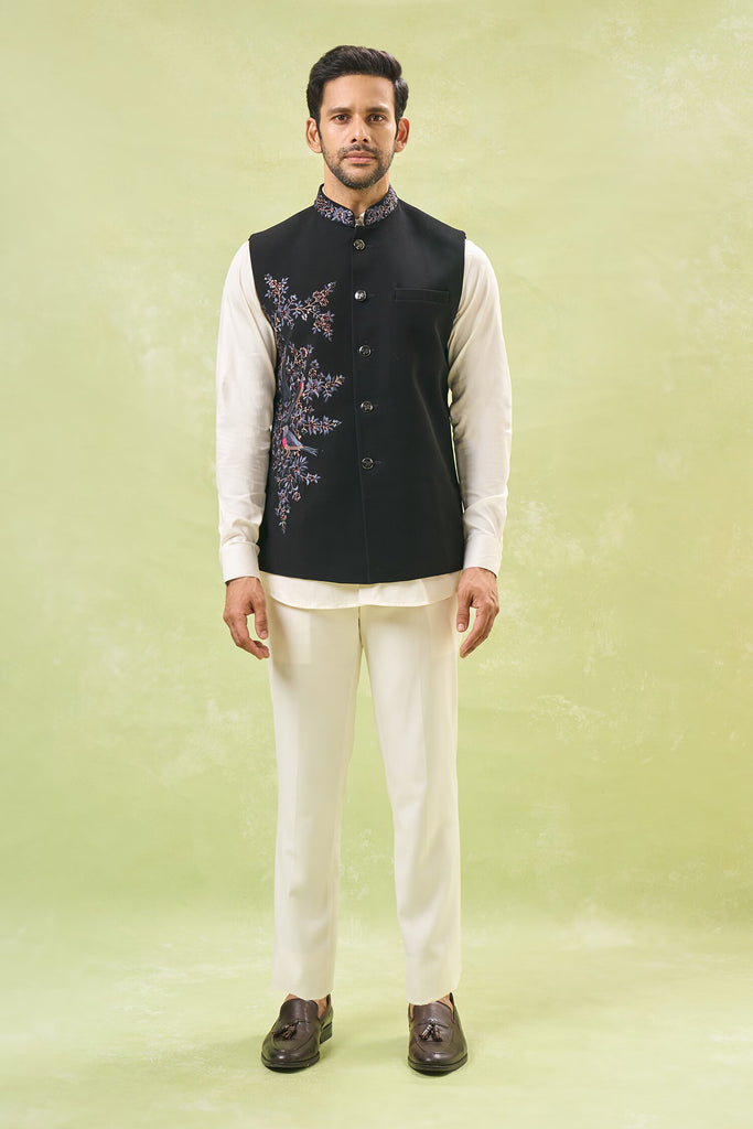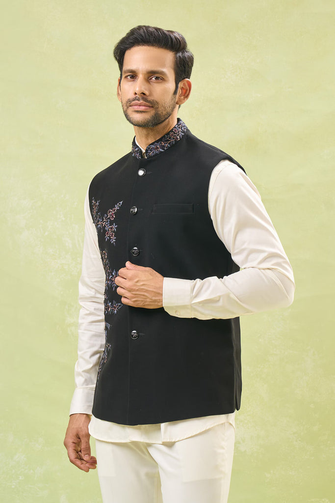Black Embroidered Nehru Jacket – Curato