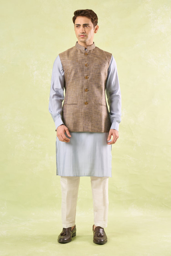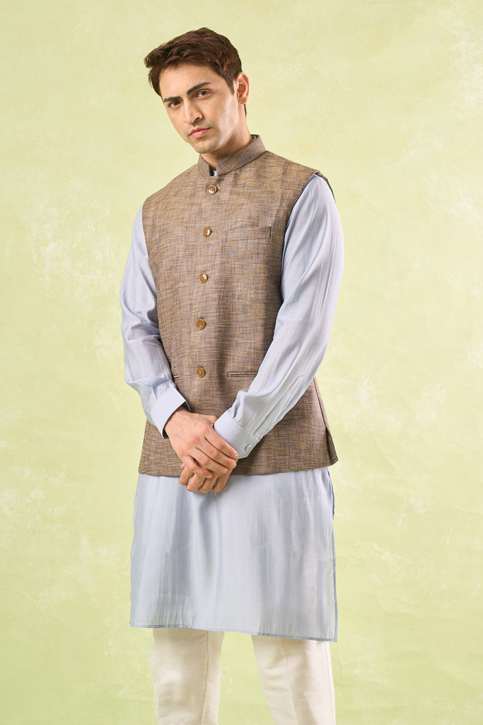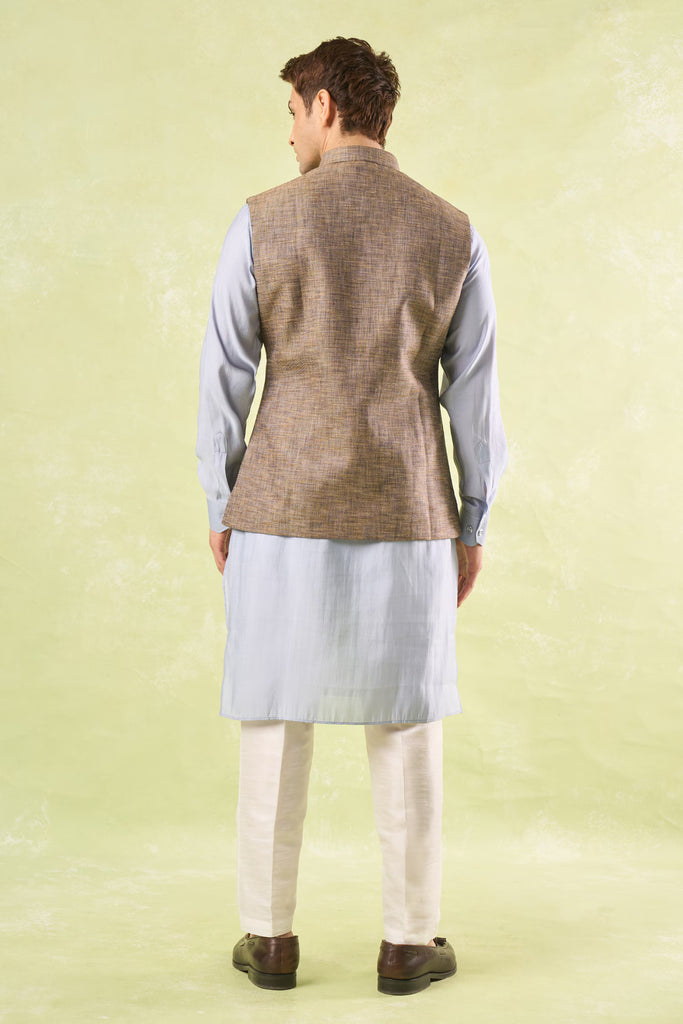 Brown tweed texture based jacket, enhanced with two hand pockets and one pocket square pocket.