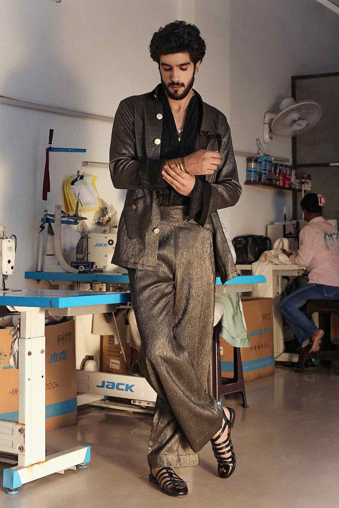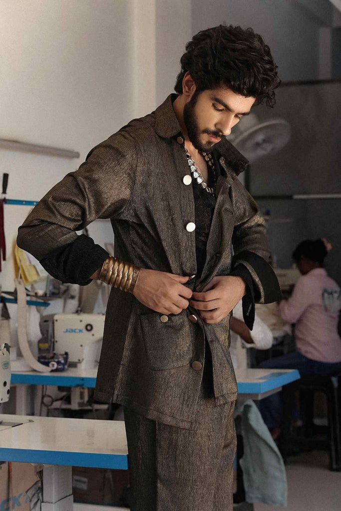 Presenting one of our latest Pretwear ensembles in a rich metallic gold — a complete 3-piece set featuring a tailored black shirt, sleek trousers, and a shacket with gold button detailing. Sophisticated, sharp, and made for the modern man.
