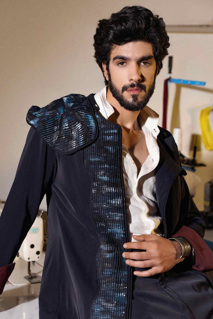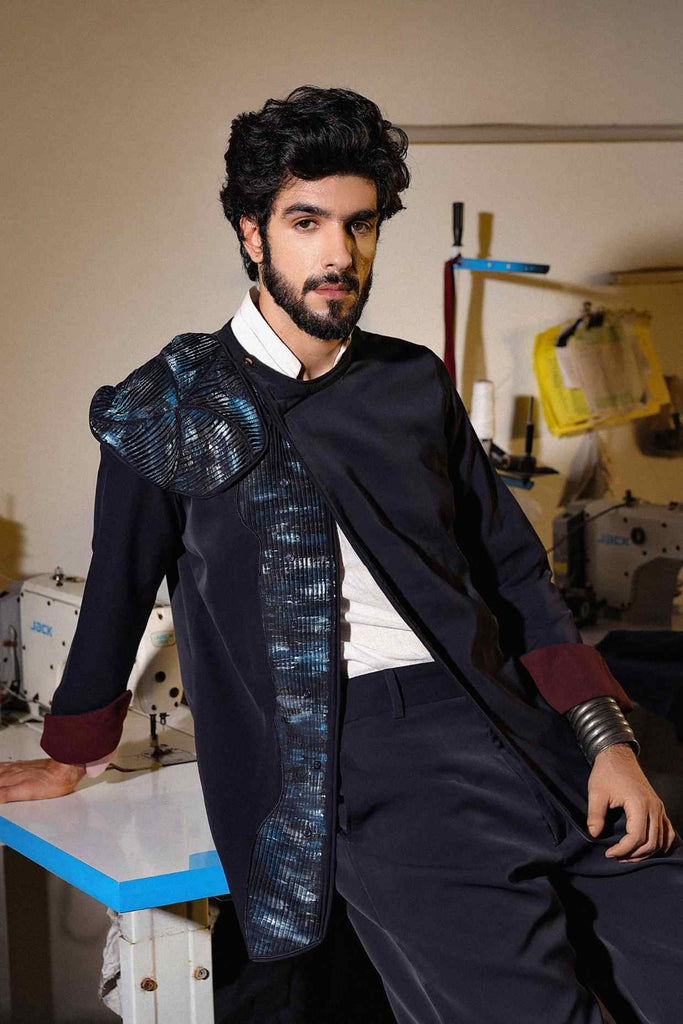 Presenting one of our latest Pretwear ensembles in a rich midnight blue — a complete 3-piece set featuring a tailored linen shirt, sleek trousers, and a shacket with hand-painted detail placket and a shoulder patch. Sophisticated, sharp, and made for the modern man.