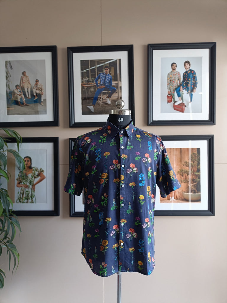 Printed half-sleeve shirt constructed with a cotton satin fabric. Designed with a classic collar, button front, and just the right amount of ease, it's your go-to for everyday dressing that feels effortless.