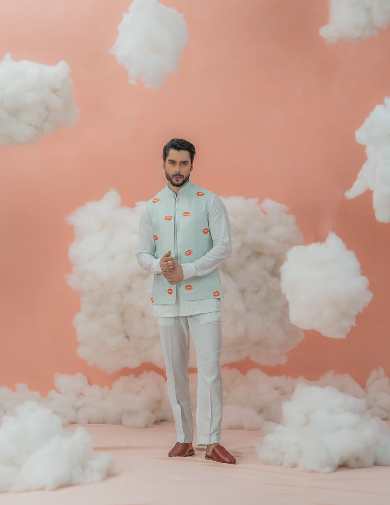 This Blue Linen bundi brings a touch of ethereal charm to any celebration. The vivid kurta paired with linen pants creates an effortlessly sophisticated and vibrant ensemble, perfect for standing out with grace.
