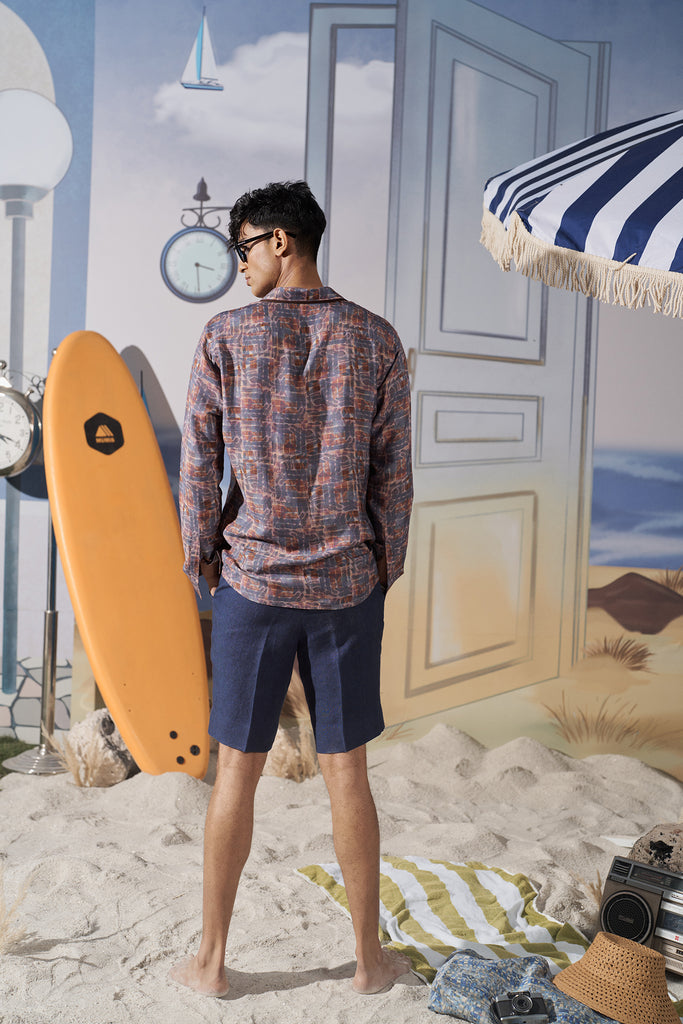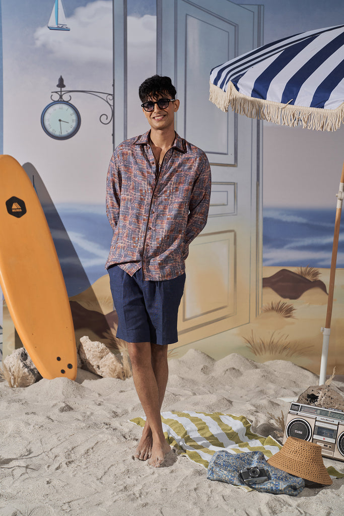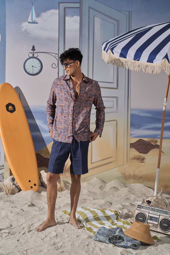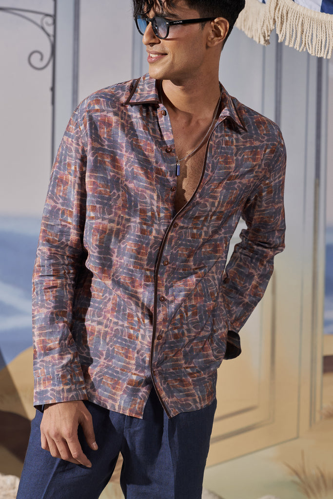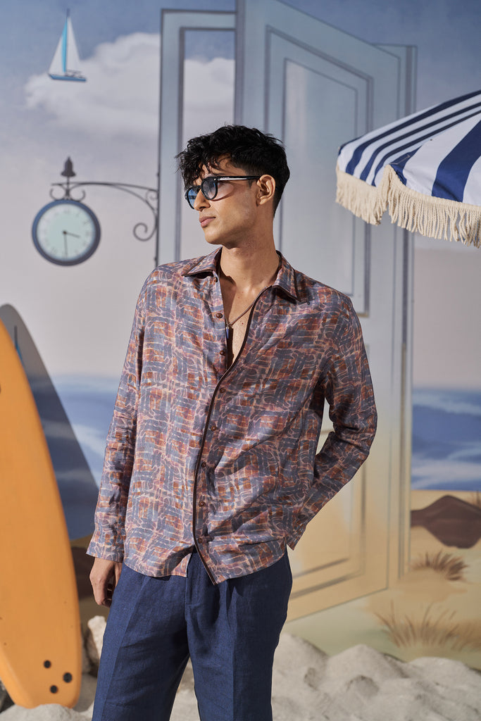 Lively yet grounded, this multicolored printed shirt features rich earthy tones complemented by brown detailing for a warm, natural feel. With its relaxed fit and vibrant pattern, this shirt brings effortless style and a laid-back energy to your summer wardrobe.