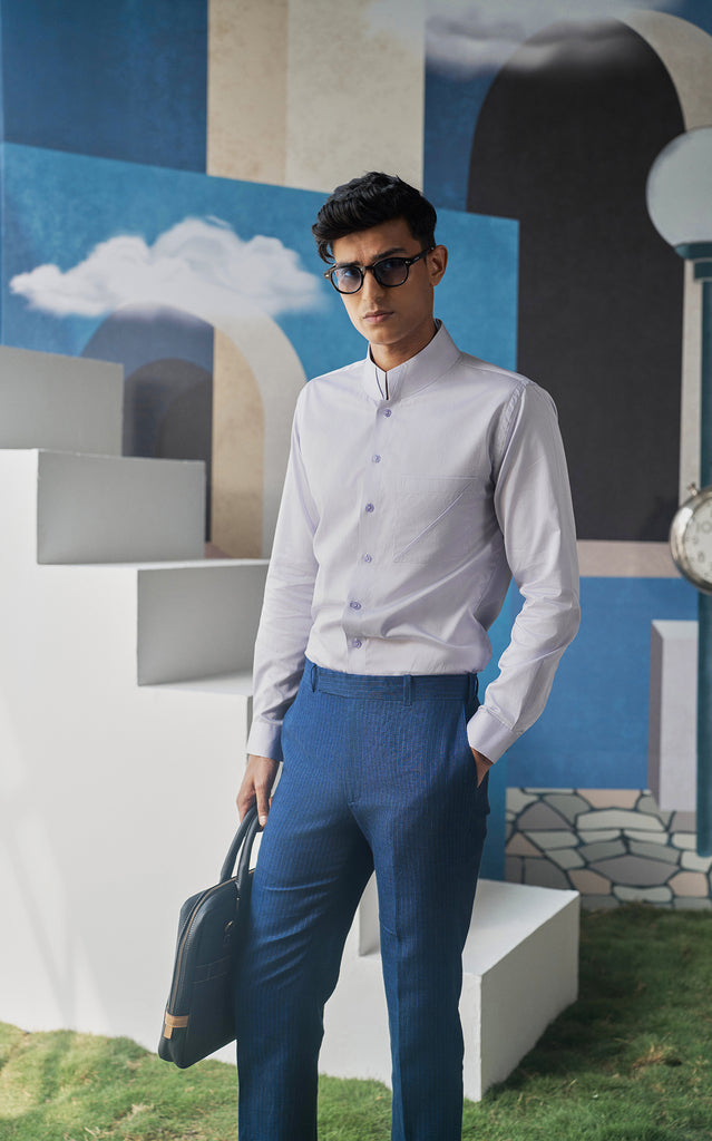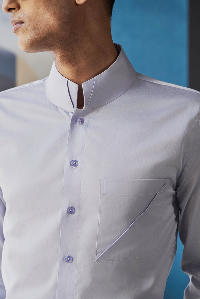 A modern interpretation of timeless elegance, this shirt features a high mandarin collar, offering a distinctive silhouette. Crafted from smooth, breathable fabric, the clean lines, elevated neckline and subtle details makes it a versatile choice for formal occasions or everyday sophistication.