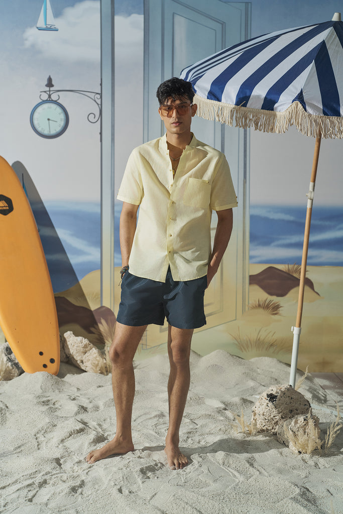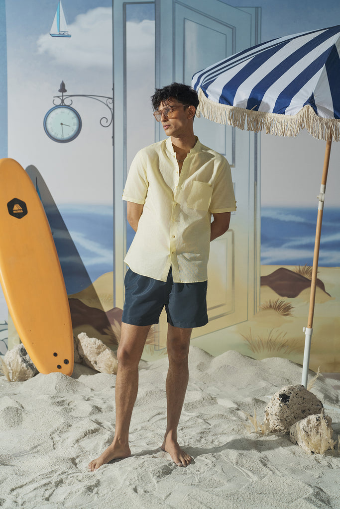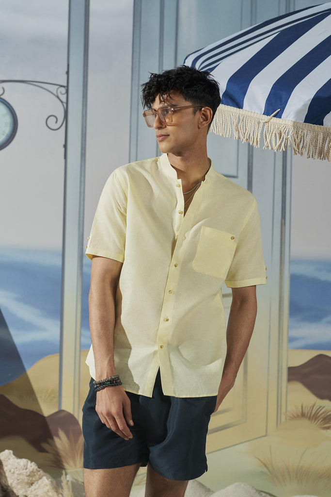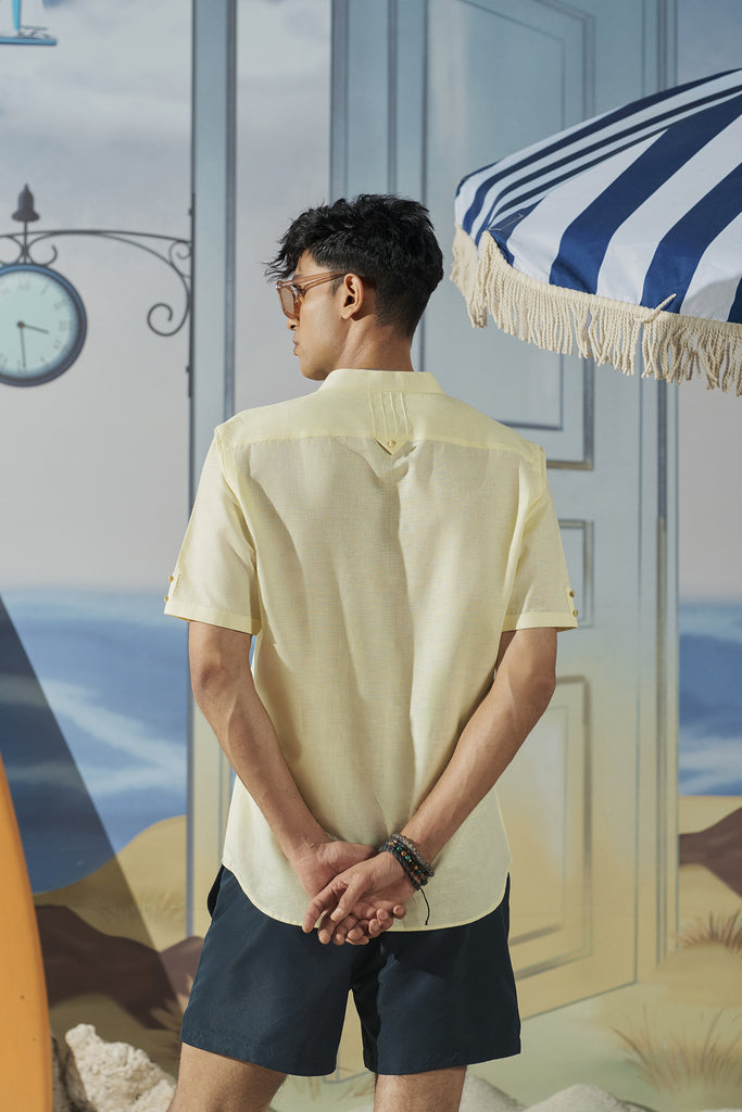 Easy days, done right. Cut from lightweight linen, this half-sleeve resort shirt brings together casual ease and quiet polish. A relaxed Mandarin collar, a sharp slant pocket, and a breezy silhouette make it perfect for sun-soaked days and slow weekends. Clean, unfussy, and designed to move with you