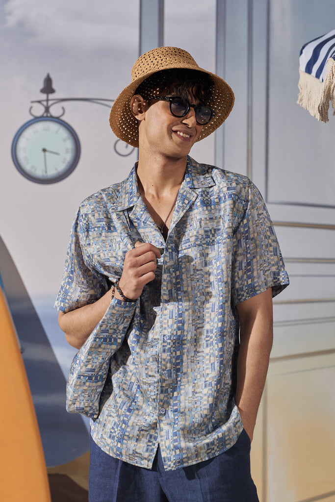 Hand-painted printed checks meet breezy comfort in this camp collar shirt. Soft, breathable, and relaxed, it’s the perfect pick for beach escapes, sunny brunches, or those laid-back vacation vibes.