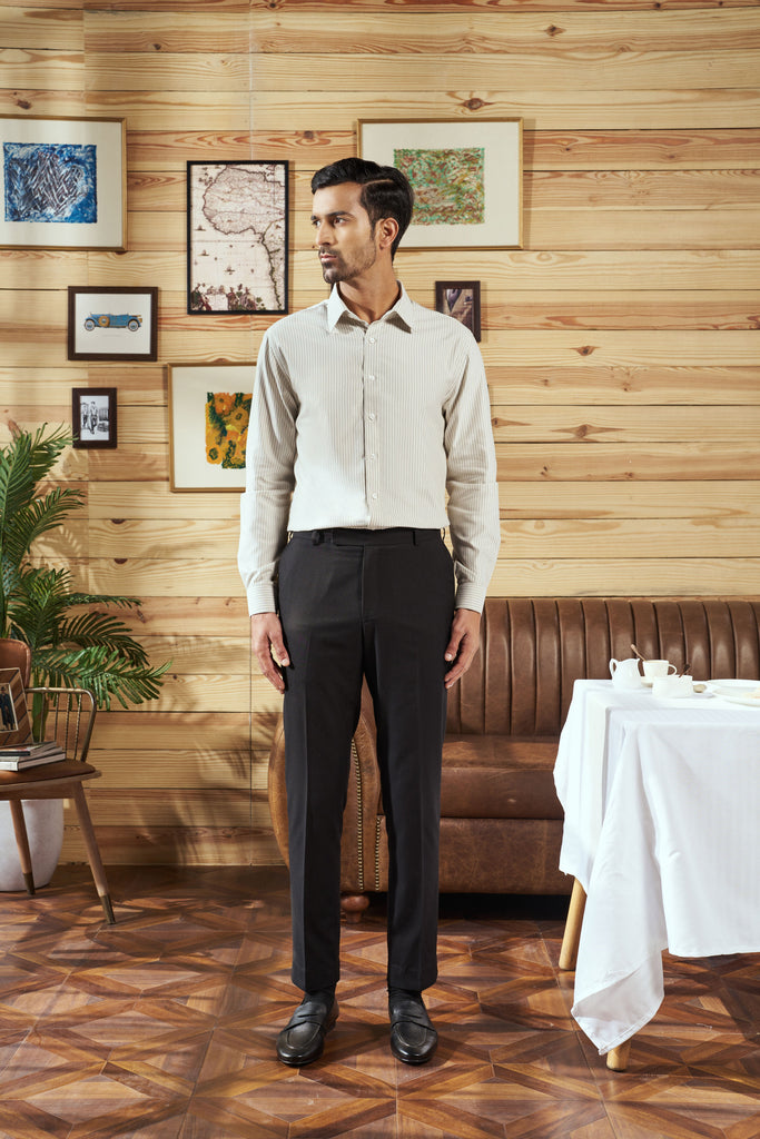 The Aspen shirt in green and white stripes offers a fresh take on classic style. Featuring a unique criss-cross yoke at the back, this shirt combines modern flair with timeless appeal. Whether dressed up for formal occasions, paired with smart-casual pieces, or worn casually every day, its clean stripes and versatile design ensure it’s always in style. The perfect addition to any wardrobe, it offers comfort and sophistication for any setting.