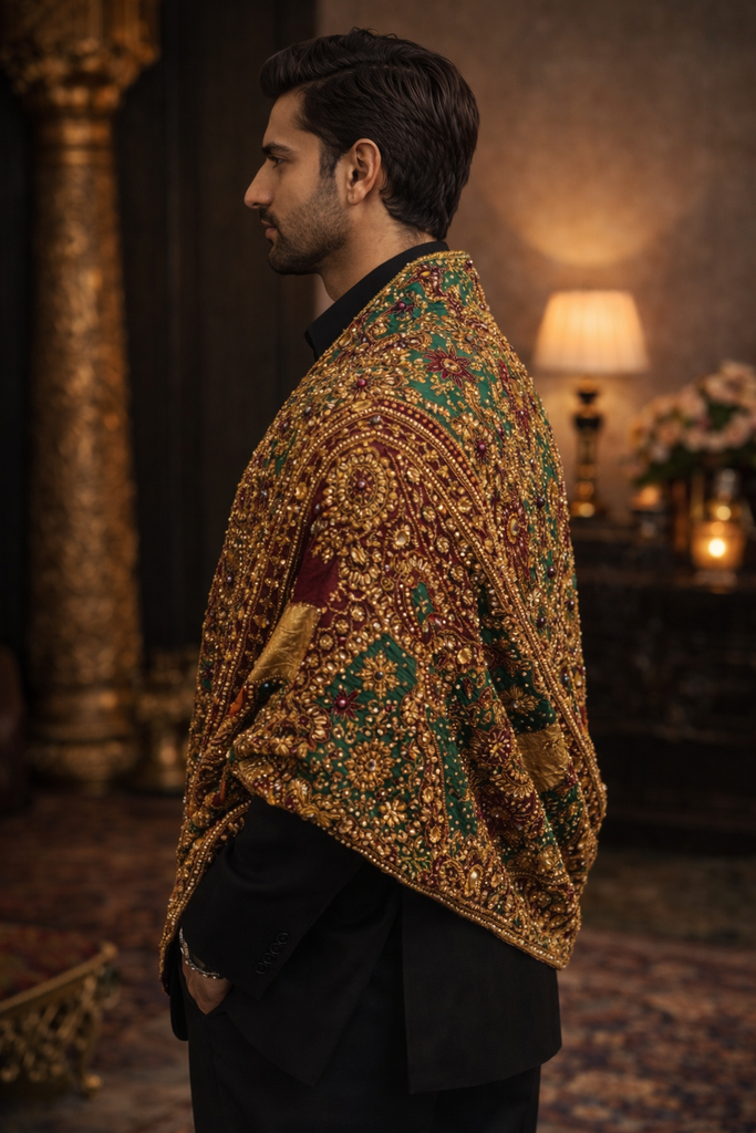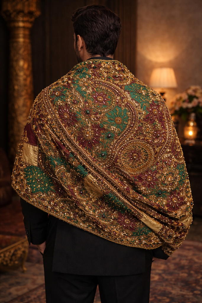 An opulent men’s shawl crafted for modern royalty, Baadshah is a statement of power, heritage, and uncompromising craftsmanship.