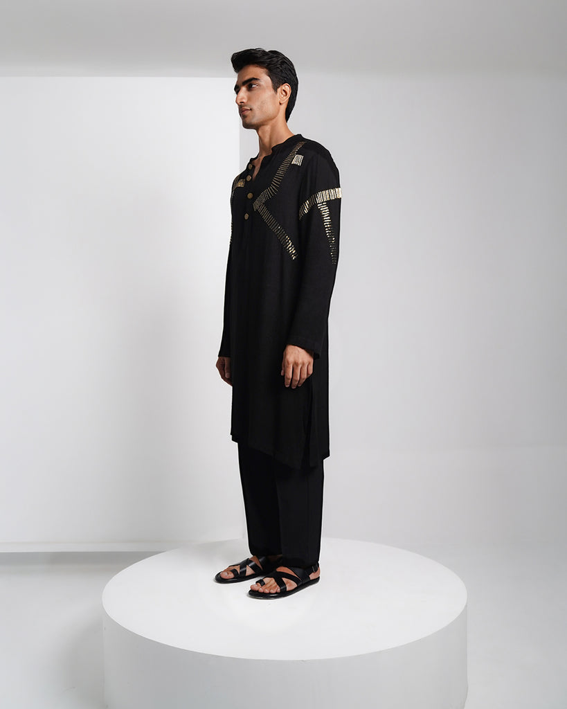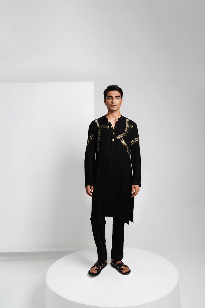 -Our crossroads shirt did so well, we launched a kurta version for you. Hand embroidered in silver and gold antique embellishments on a Cotton silk fabric, it's flowy, comfortable, and perfect for the next housewarming party or family gathering.