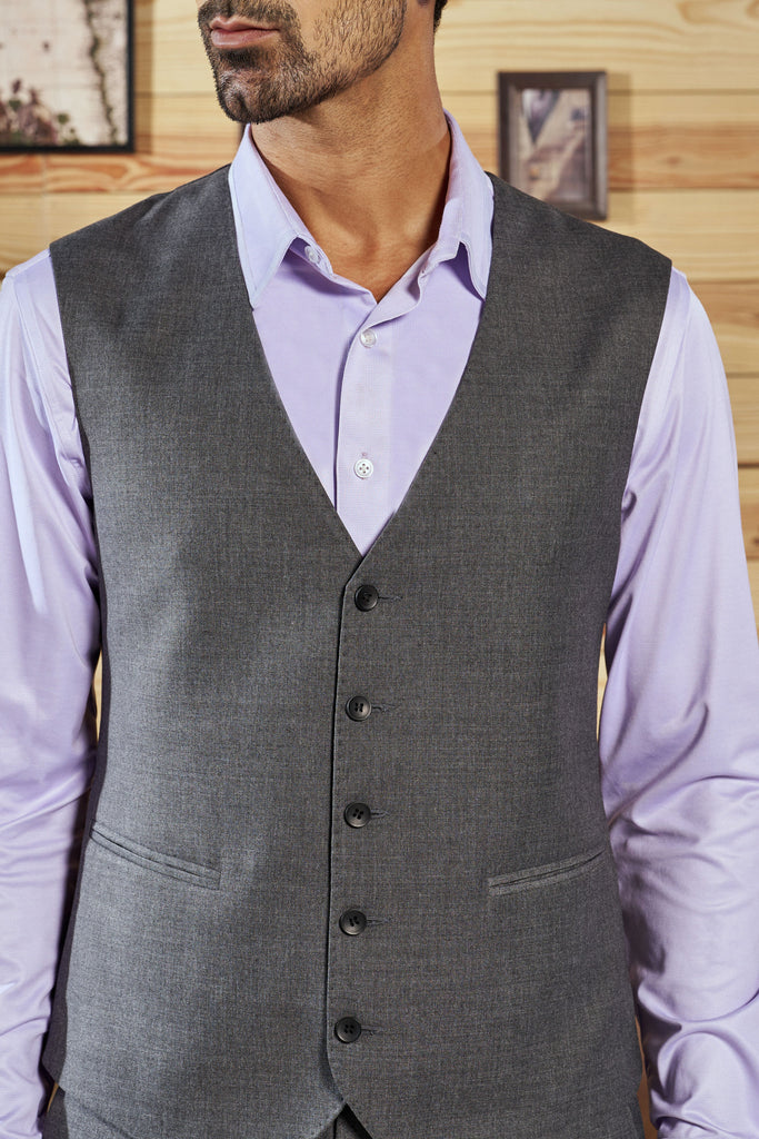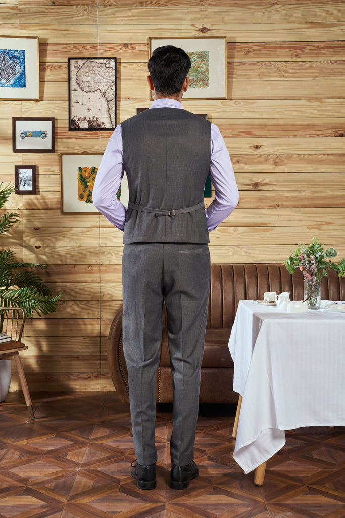 Crafted from luxurious perennial wool in a refined grey hue, this classic waistcoat is designed to elevate any outfit. Its tailored fit and sleek cut make it a versatile addition. With its sharp design and a hint of personality in the custom-printed lining, this waistcoat strikes the perfect balance between sophistication and individuality, making it a wardrobe essential for every modern gentleman.