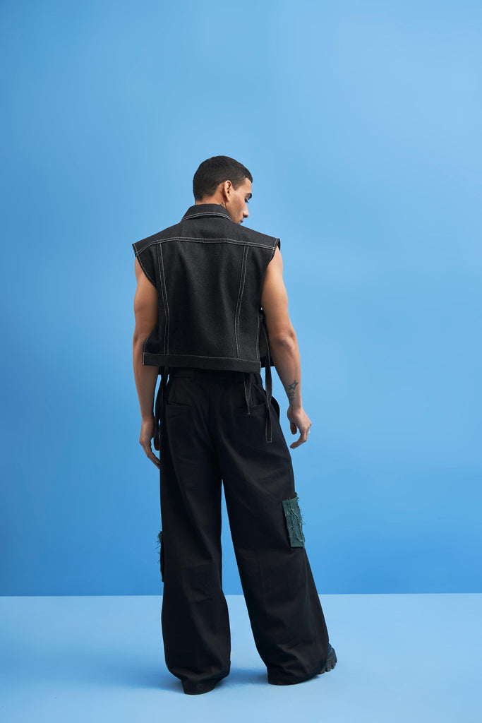 This cropped denim jacket is a classic silhouette that's a quintessential style in everyone's wardrobe. With the label's touch, the jacket features tie-up details across the sides.