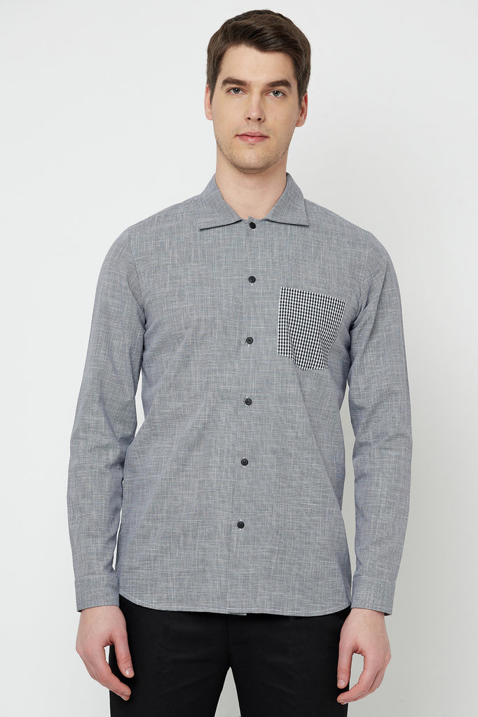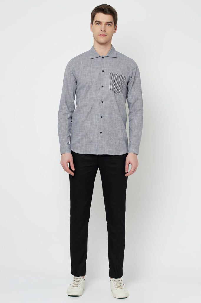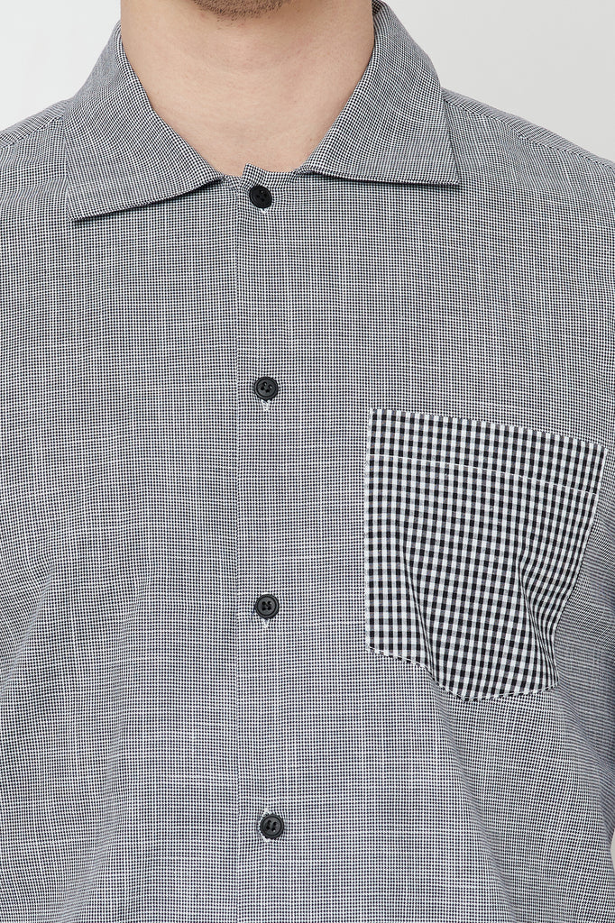 Houndstooth shacket with a stylised collar without a stand for that indie look. The shirt is a perfect piece for casual occasions, coffee hangouts, afternoon catch ups or evening bar meet ups. A small gingham pocket adds to the style element of this shirt adding that sartorial detail to the piece....