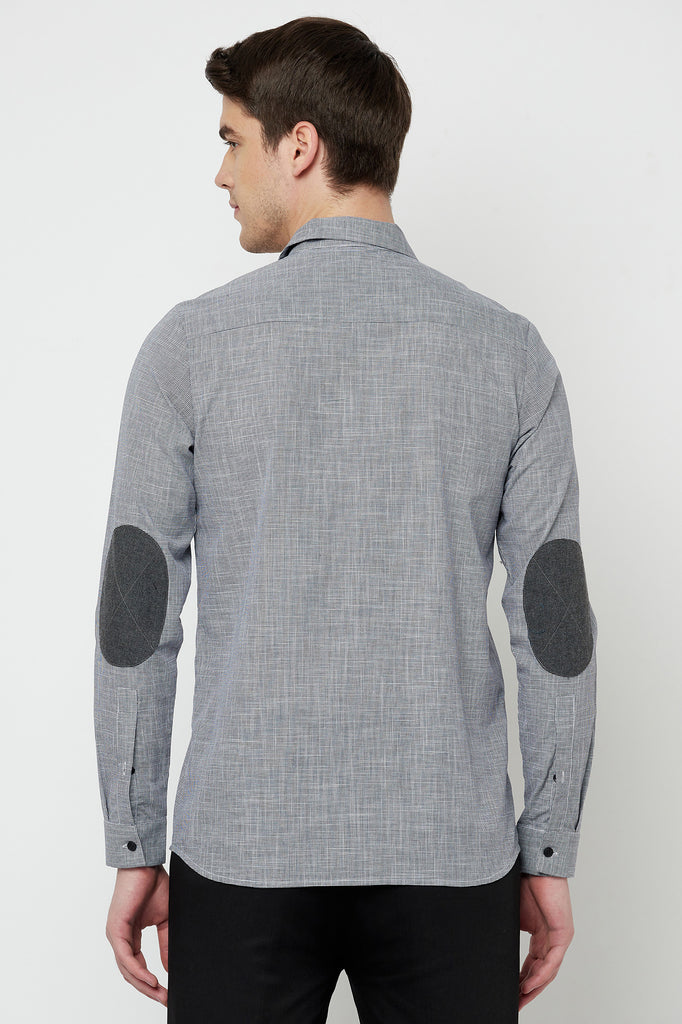 Houndstooth shacket with a stylised collar without a stand for that indie look. The shirt is a perfect piece for casual occasions, coffee hangouts, afternoon catch ups or evening bar meet ups. A small gingham pocket adds to the style element of this shirt adding that sartorial detail to the piece. Black buttons have been used in the shirt along with a darker tone elbow patch.