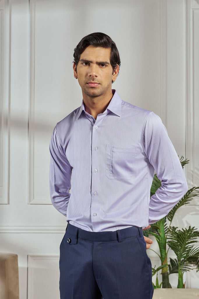 The Fialo shirt in soft pastel purple is a perfect balance of elegance and modern charm. Its standout feature is the pleat detailing on the pocket, adding texture and sophistication to the design. Versatile and tailored to perfection, this shirt is ideal for both formal occasions and refined everyday wear, offering a unique take on classic style.