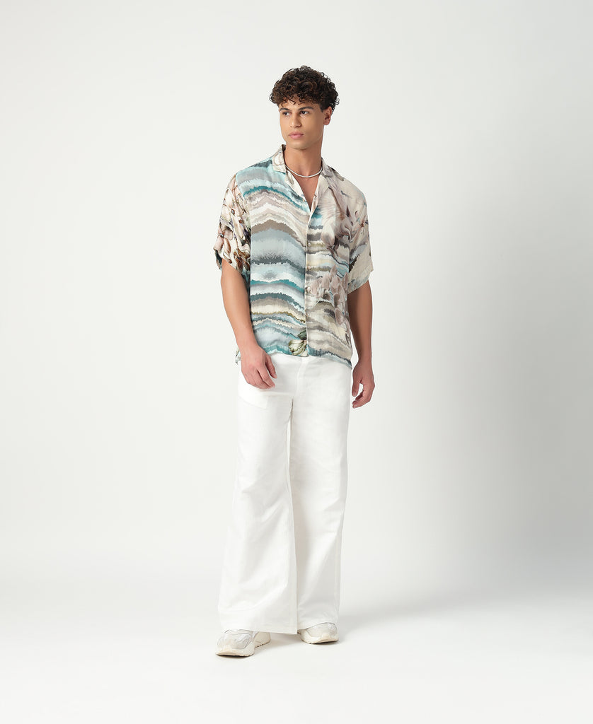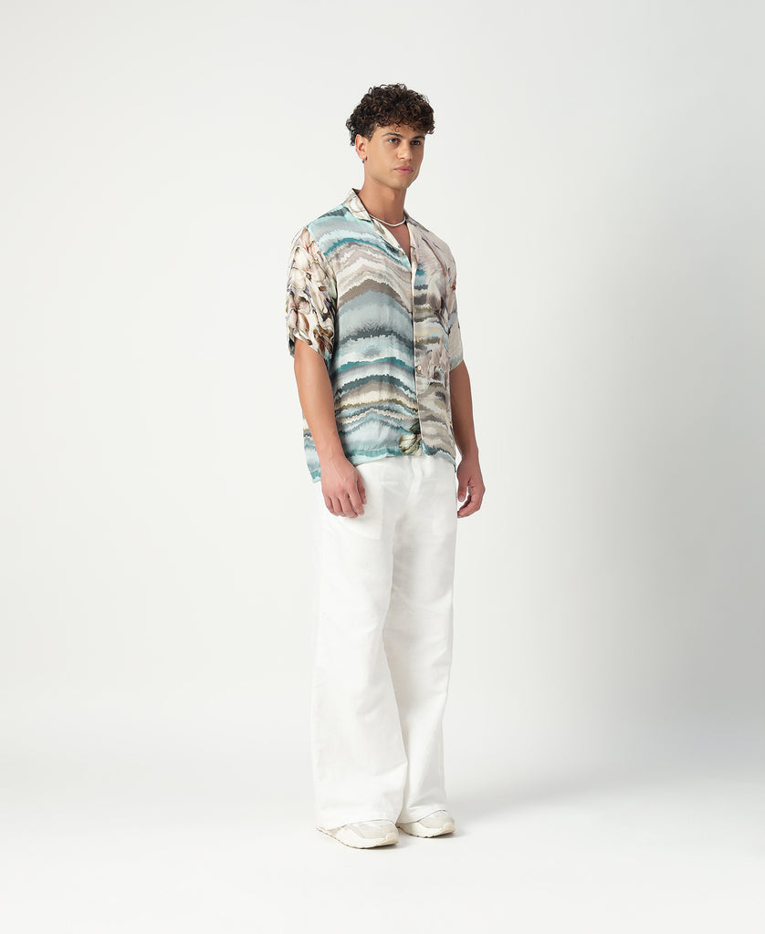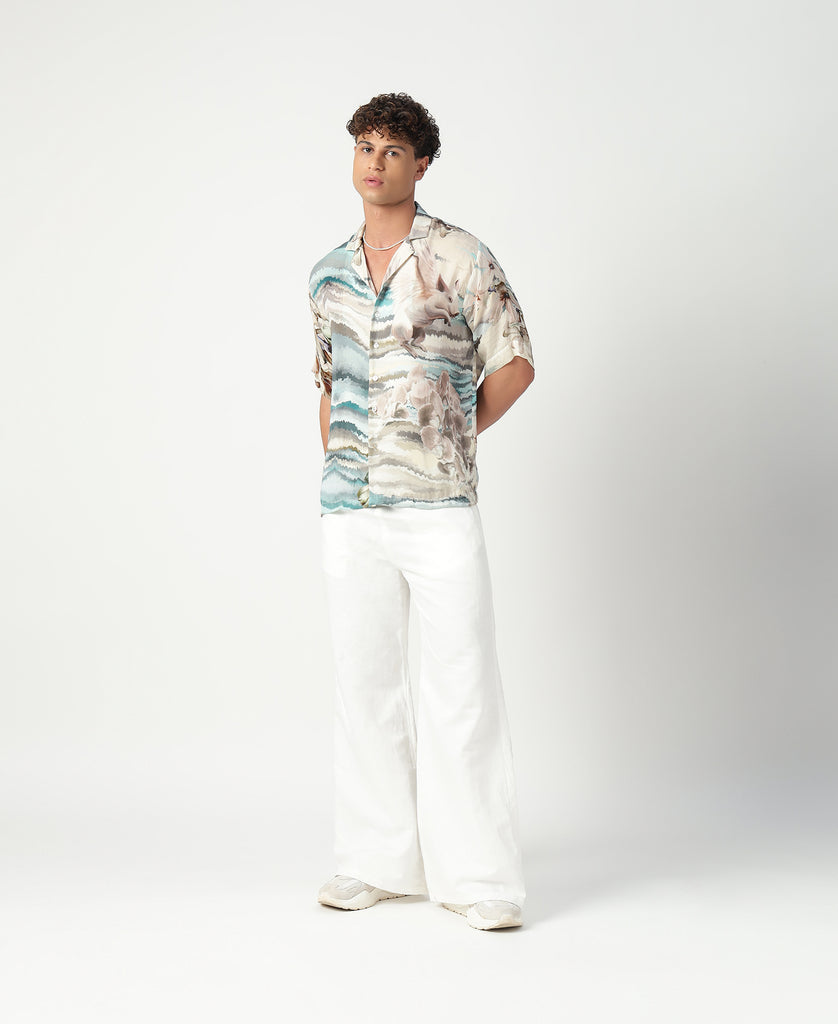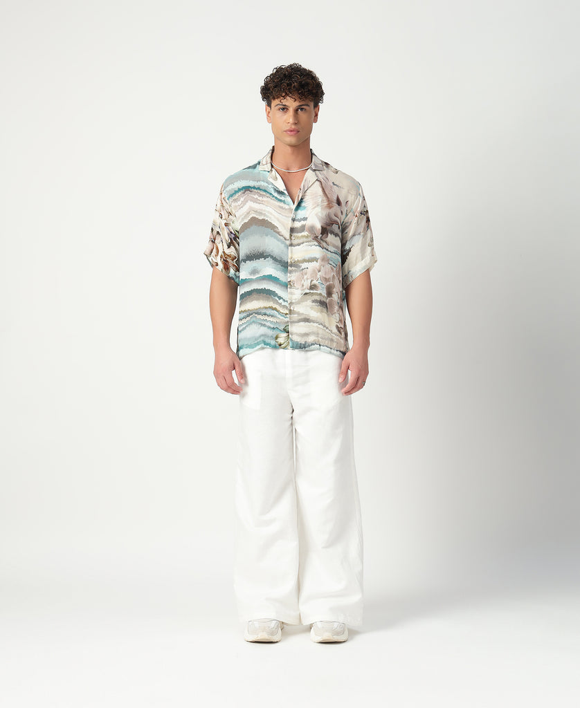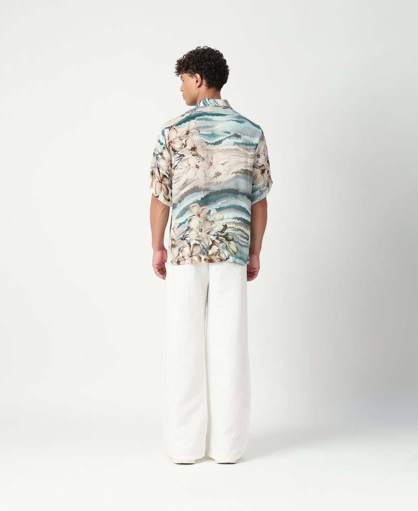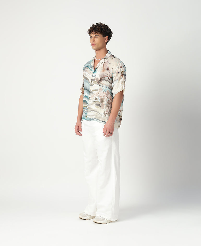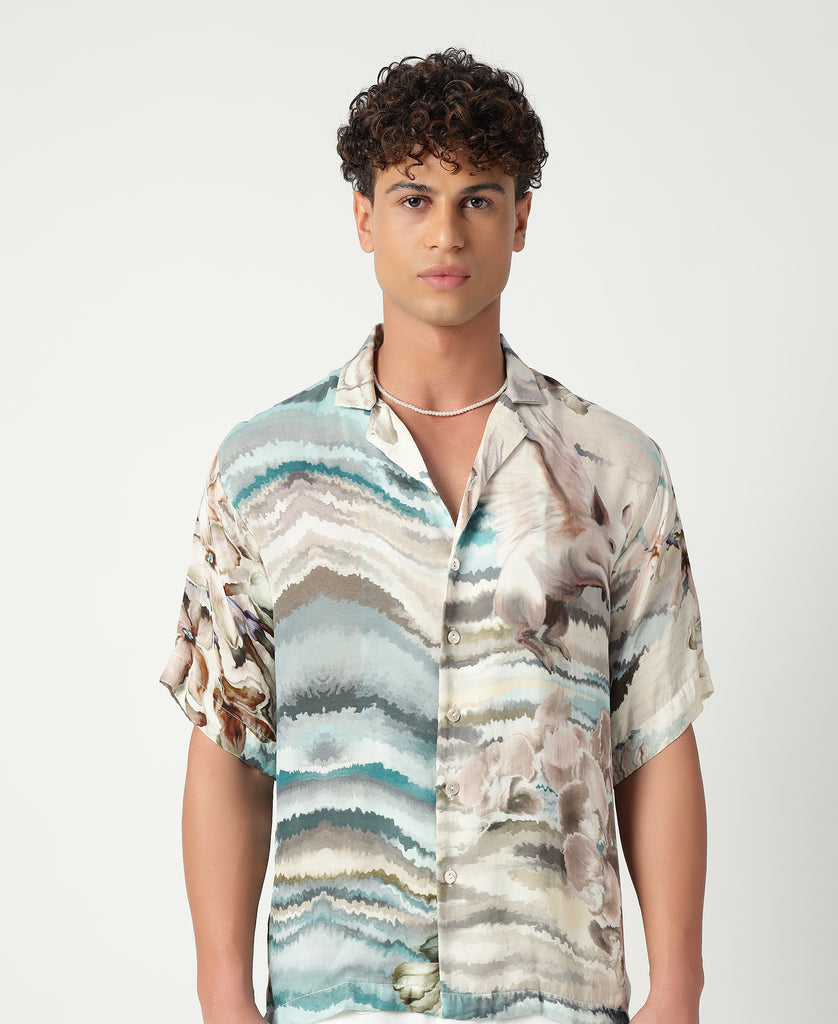 Unleash your bold side with our satin shirt, adorned with playful flying angel pigs and vibrant florals. This eye-catching design drapes seductively, making it the perfect piece for confident individuals who love to blend fun with flirtatious elegance.