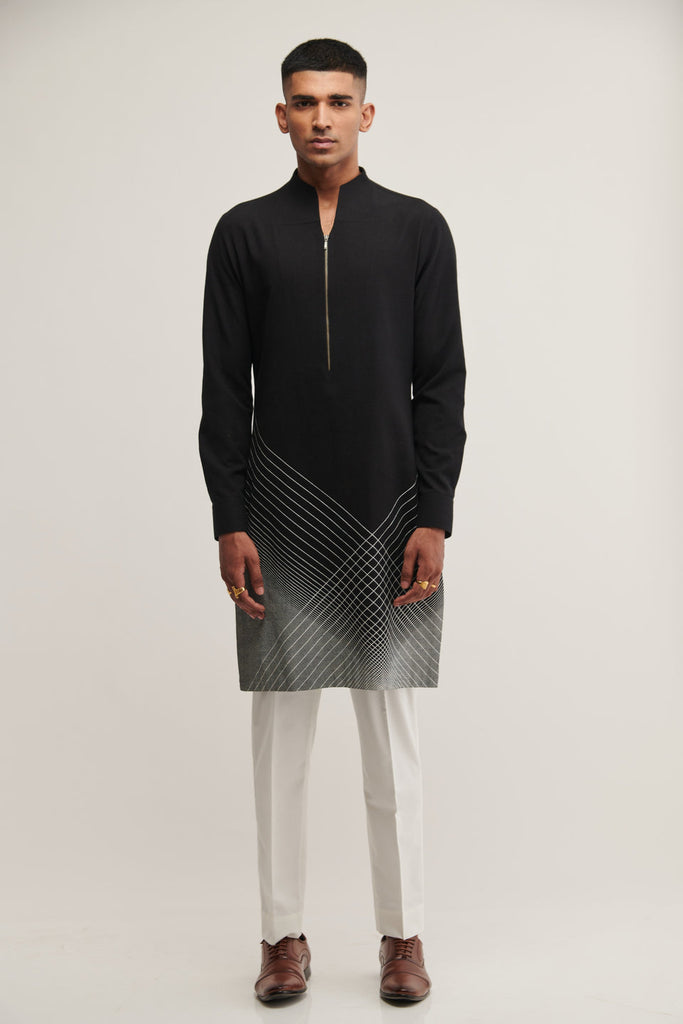 HANDLOOM PRINTED KURTA SET IN BLACK – Curato
