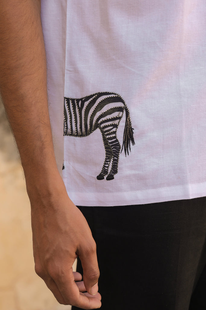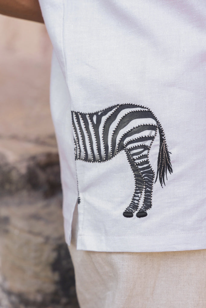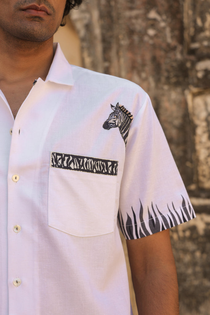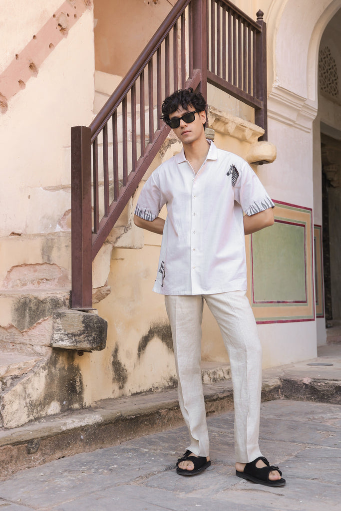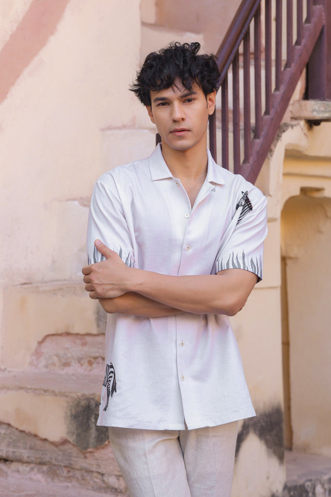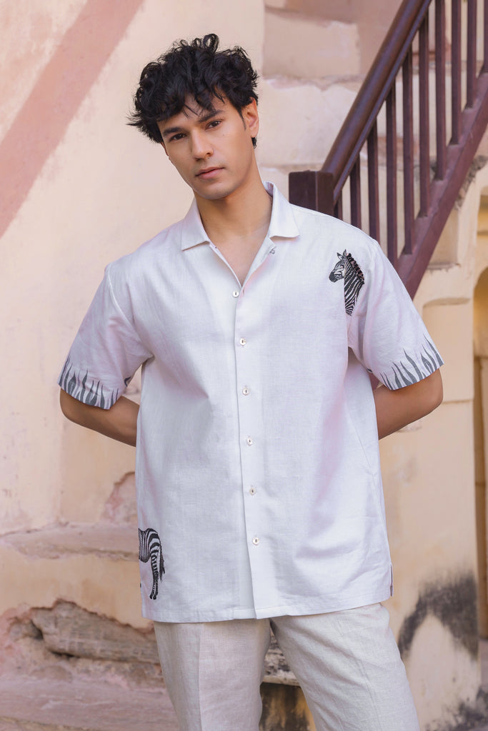 Ivory Embroidered Cuban Collar Shirt Zebra – Curato