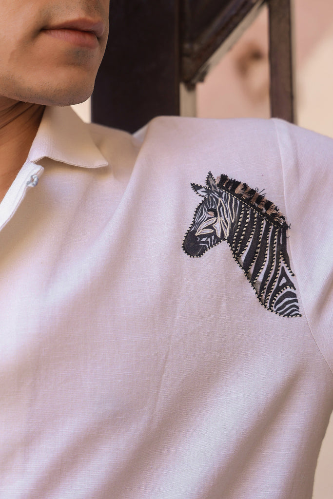 Ivory Embroidered Cuban Collar Shirt Zebra