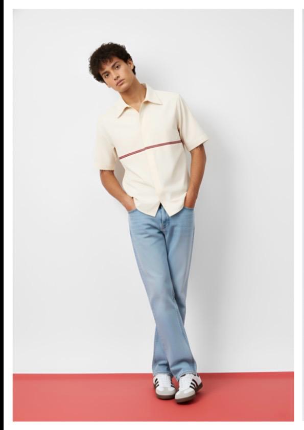 This ivory and tuscan red shirt is designed with a clean, structured silhouette and tuscan red horizontal stripe accent on the front. It features basic half sleeves with a horizontal stripe in the back and is finished with a classic collar. Easy to style for both work and everyday wear,...