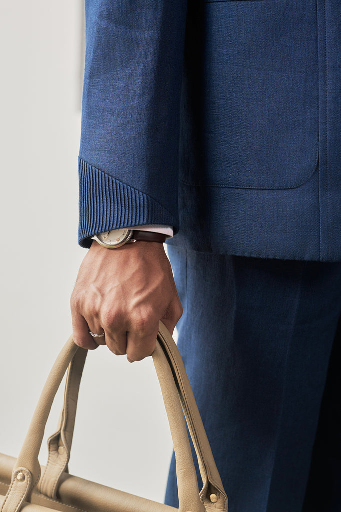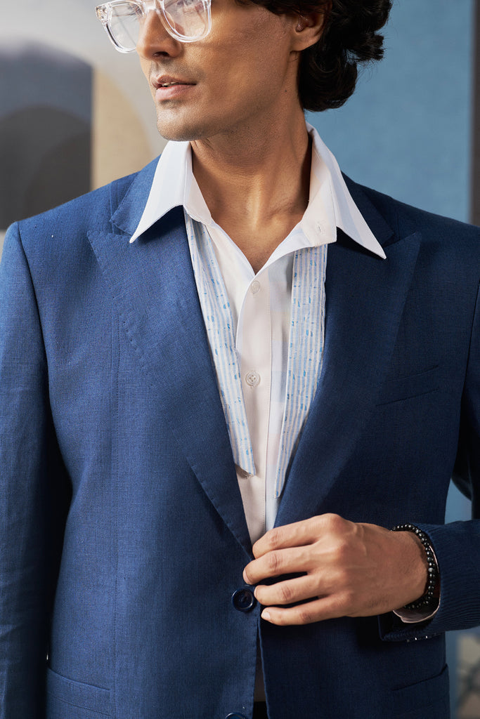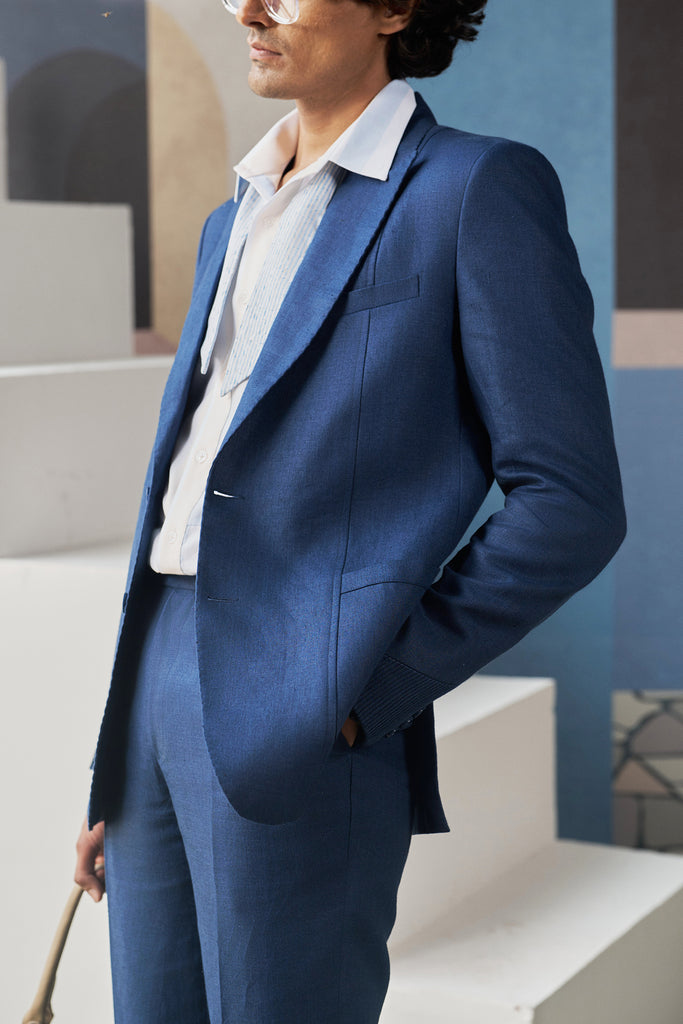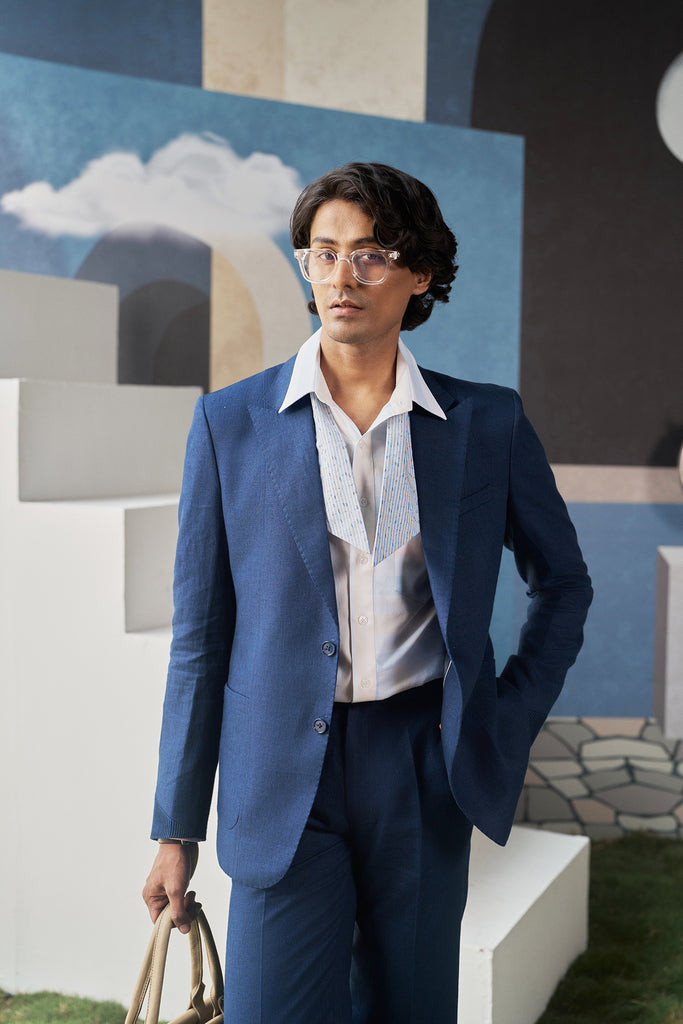 This linen suit is all about modern tailoring with a relaxed twist. Pintuck sleeve details bring just the right amount of sharpness, while the straight-fit Gurkha pants keep it grounded. Lightweight, breathable, and perfectly crafted for the man who blends sophistication with ease.