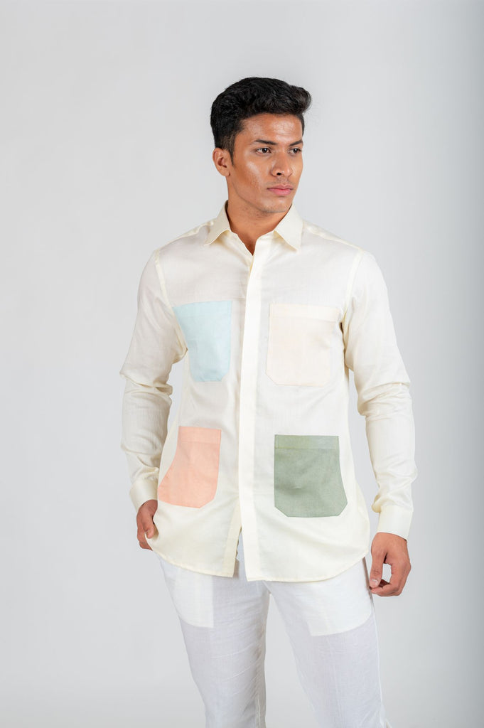 Beautified with four pastel patch pockets, the shirt has a shene and great pick for any summer occassion.