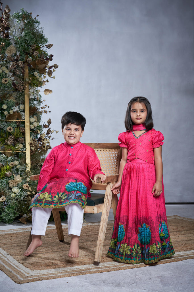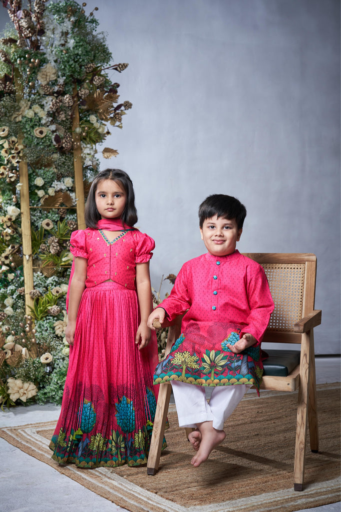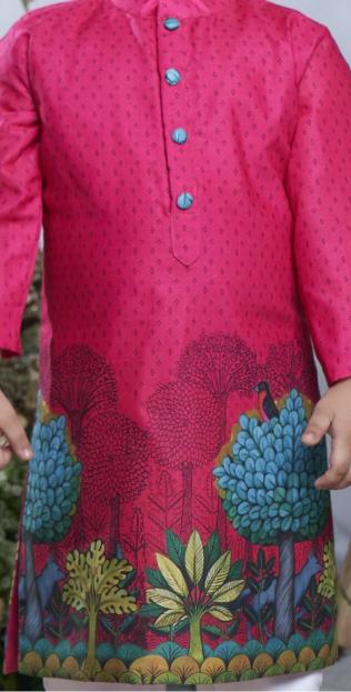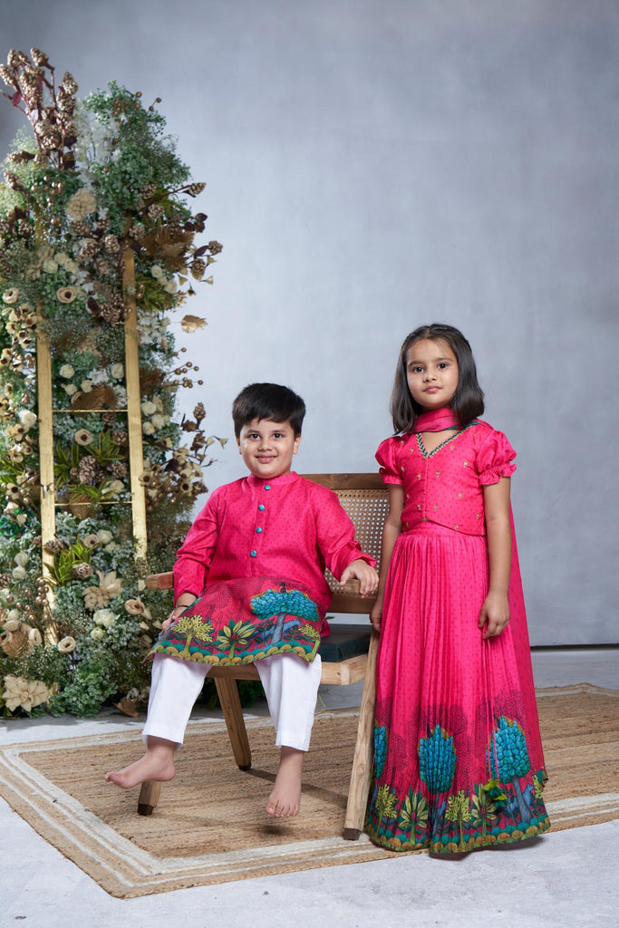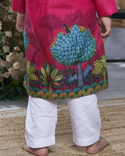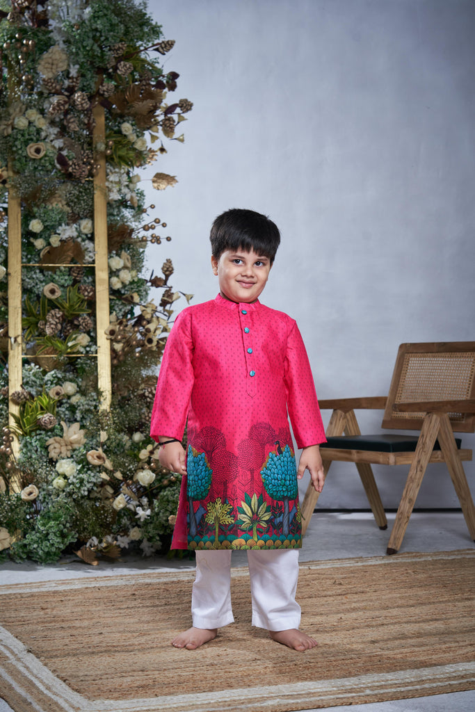PINK PICHWAI PRINT KURTA SET WITH PYJAMA