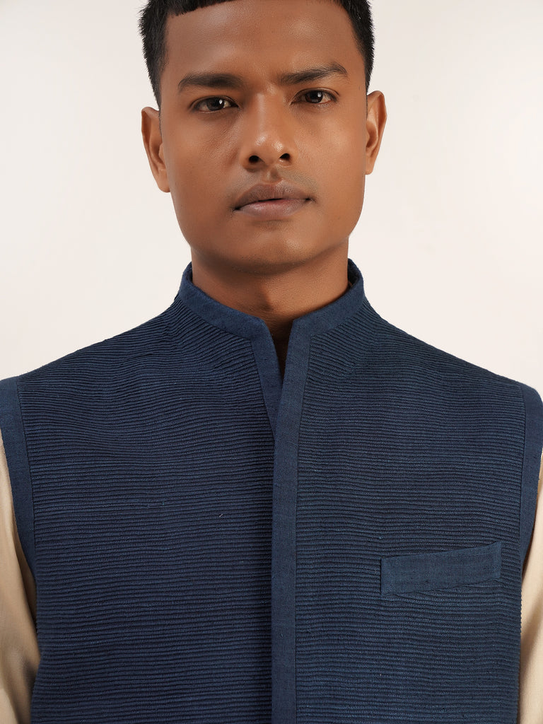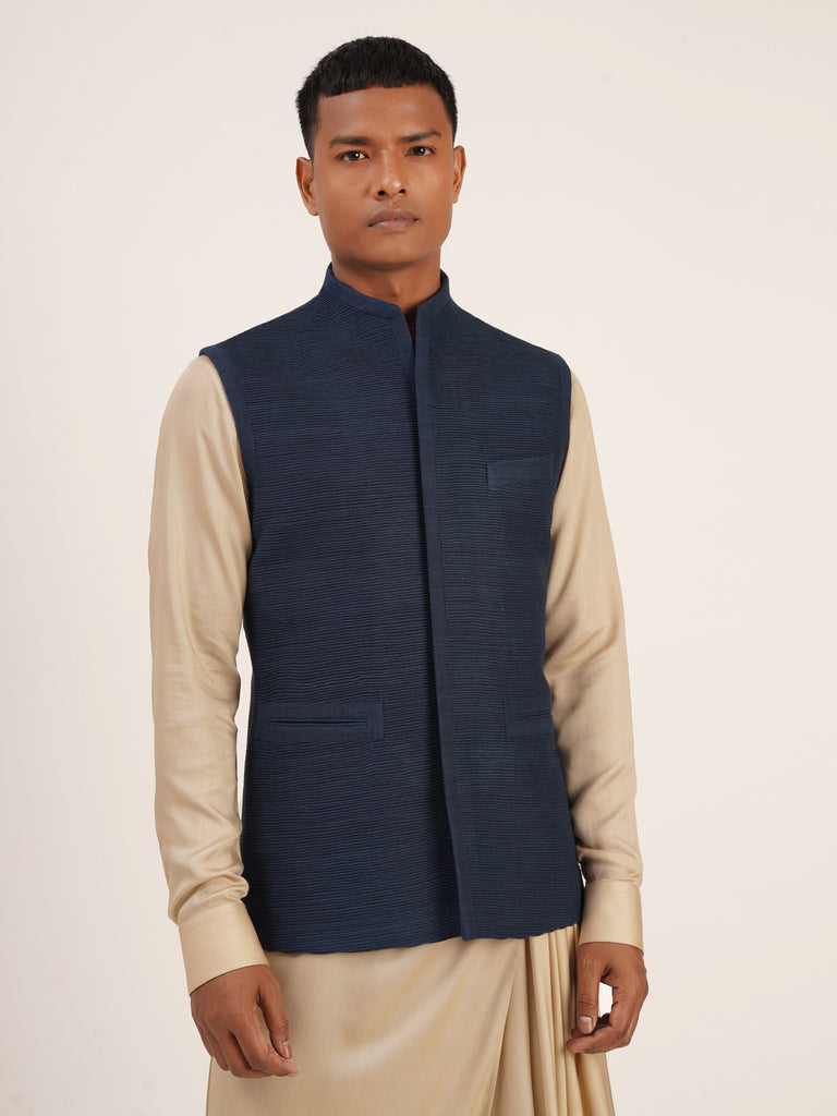 Silk High Neck Jawahar Jacket With Pintuck Detailing