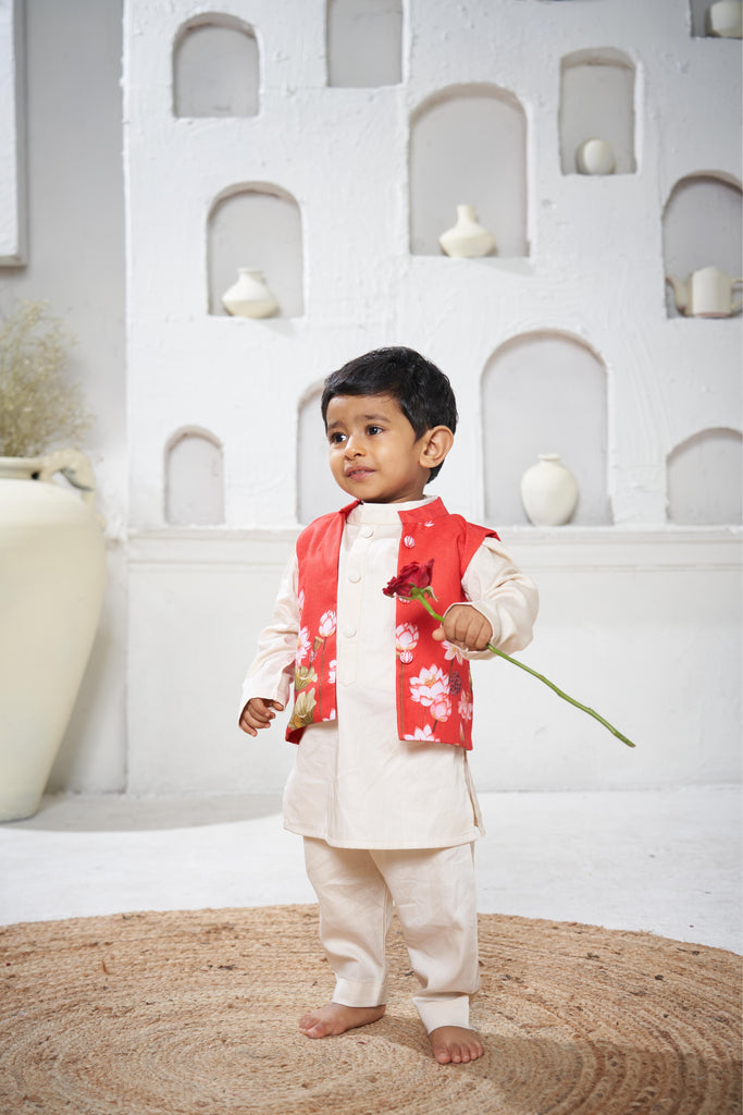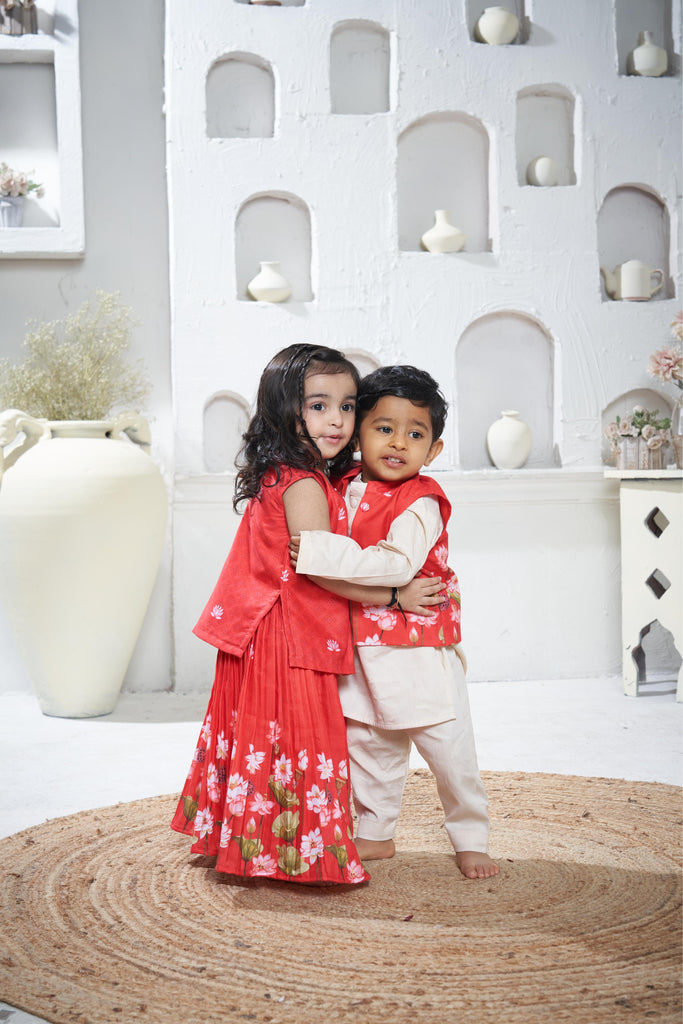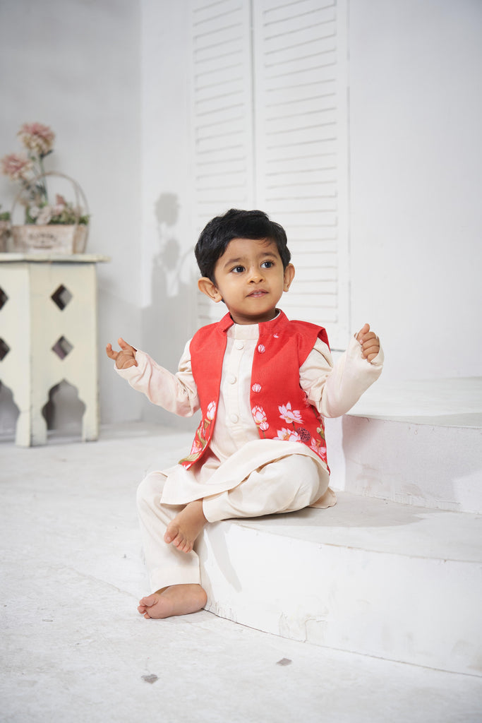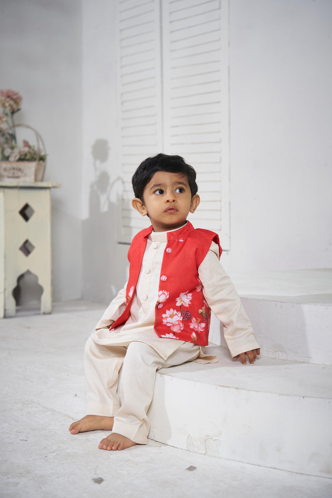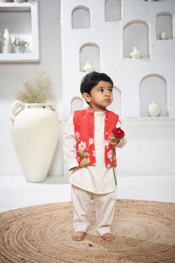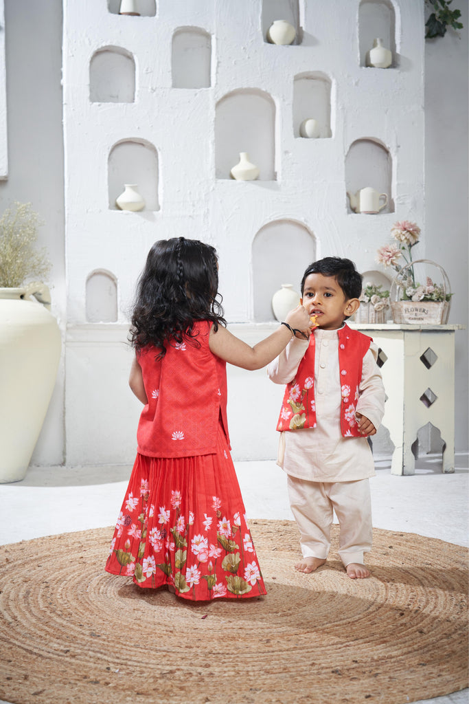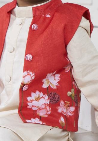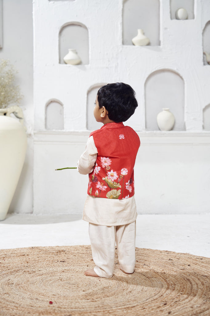RED PICHWAI BANDI SET WITH RPINTED LOTUS MOTIFS