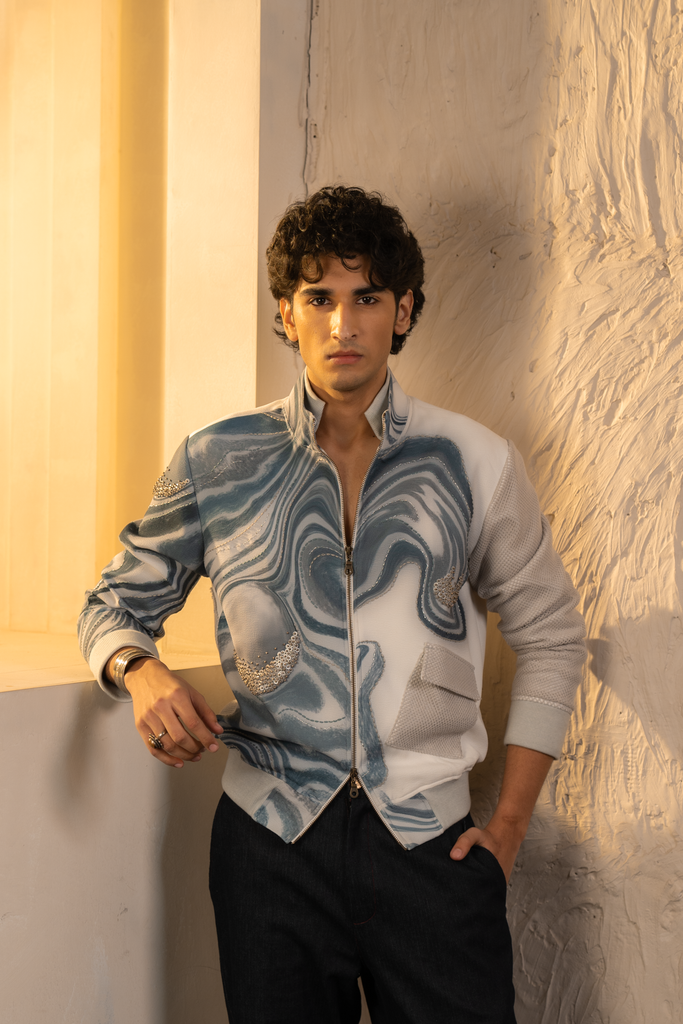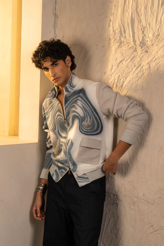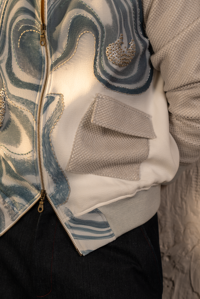 Featuring our Sienna Wave Bomber inspired by fluid vibrations, in our signature teal colour blended with grey tones, making it perfect for elevated everyday outings.