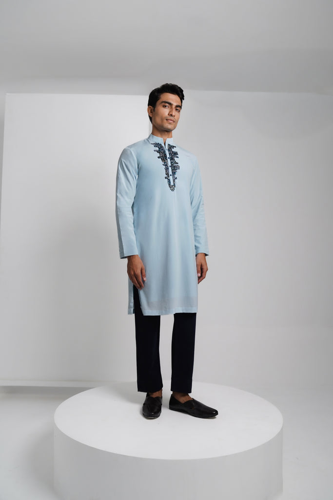 - Soft sky blue kurta in 100% Silk