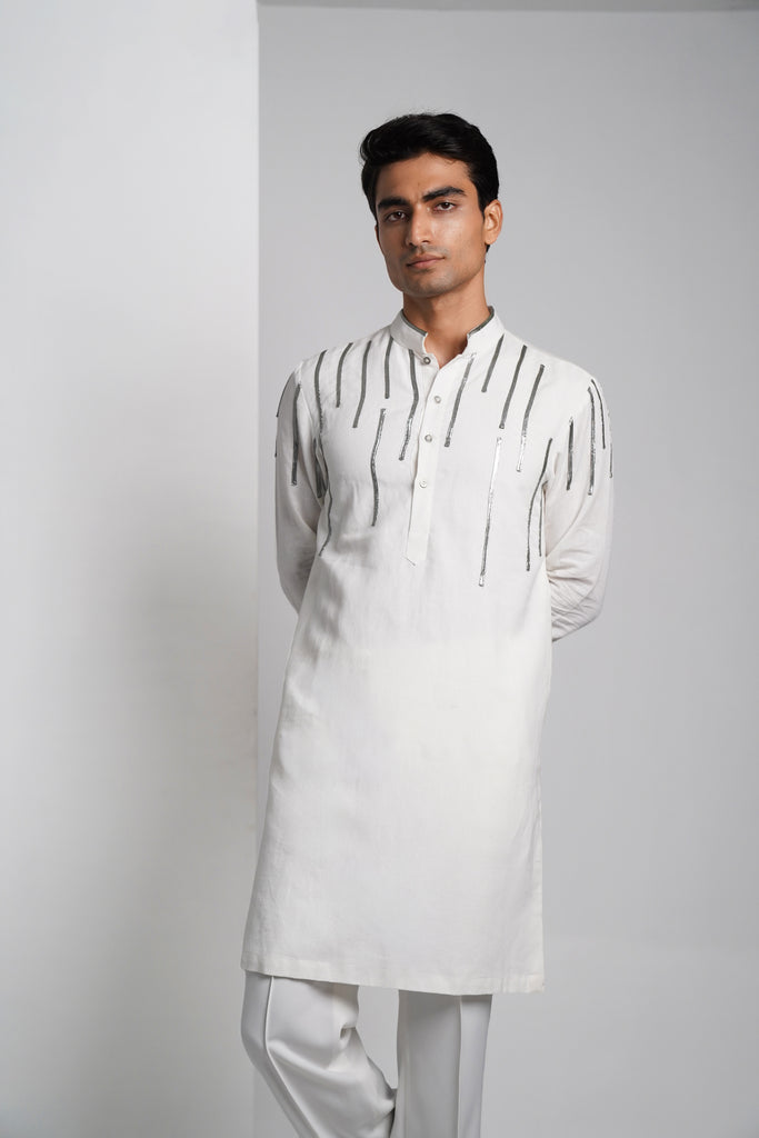 Silver lining kurta - White