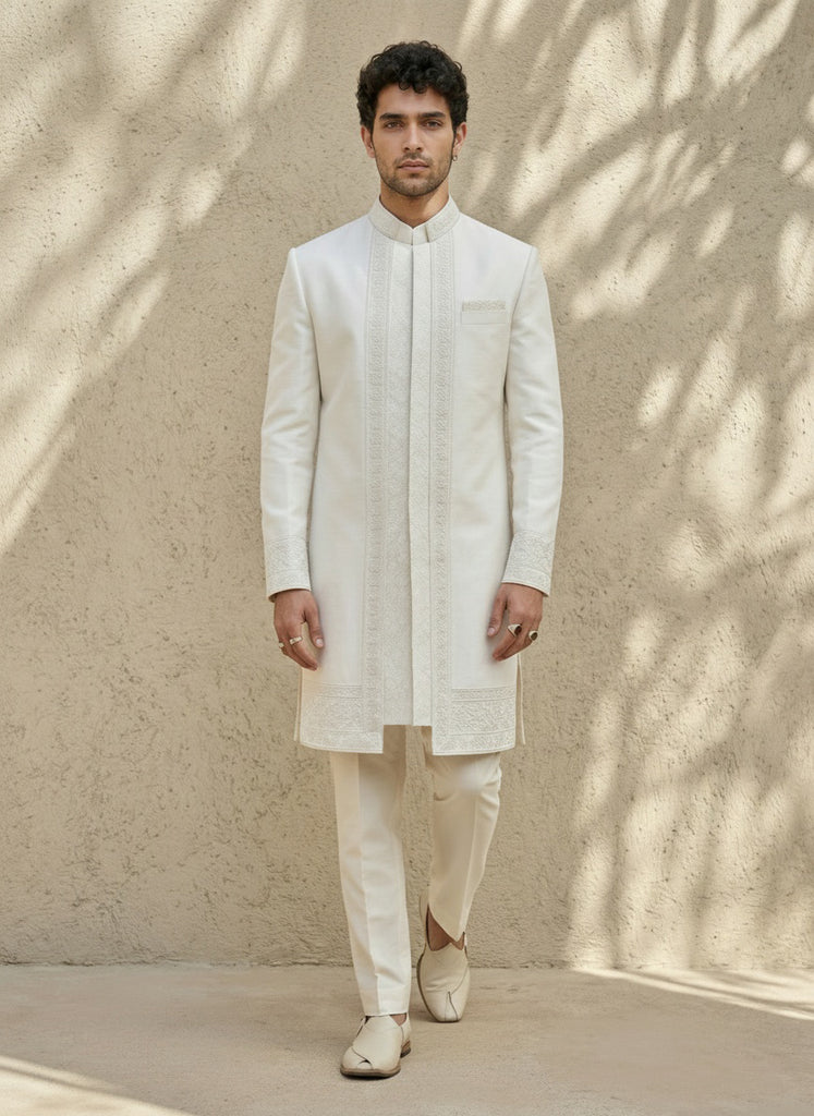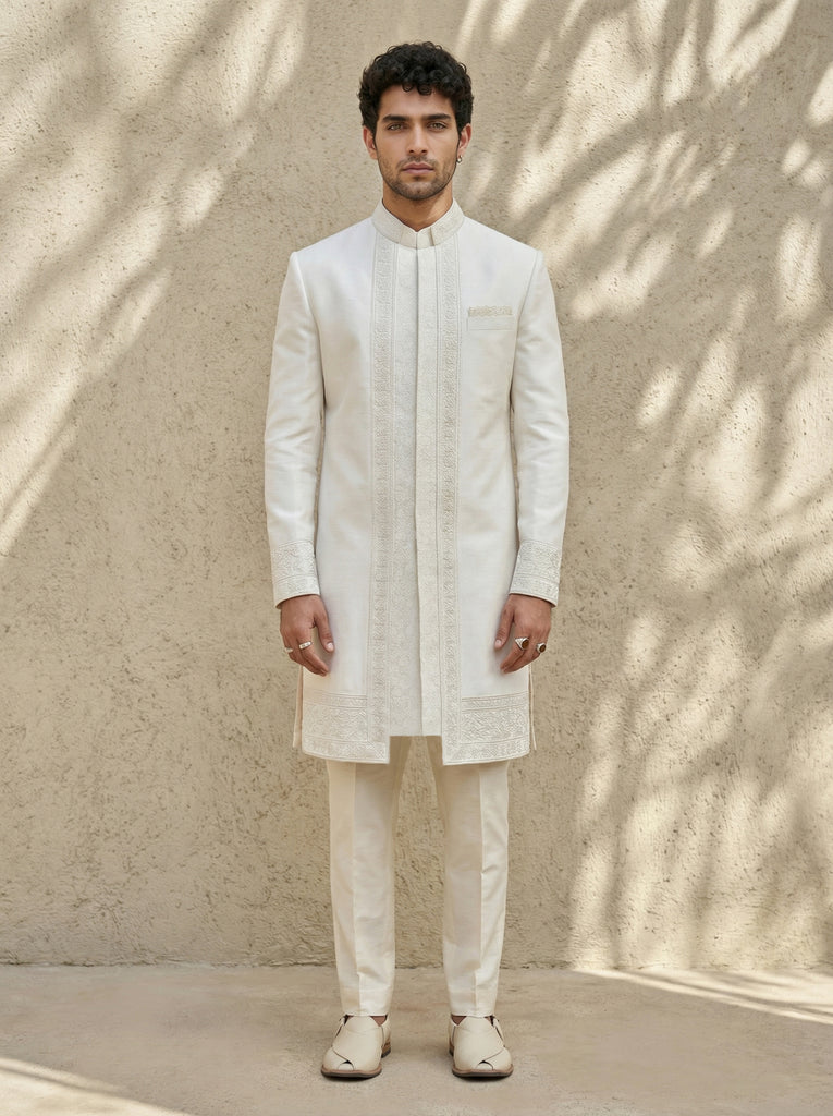 Offwhite celtic embroidered sherwani jacket