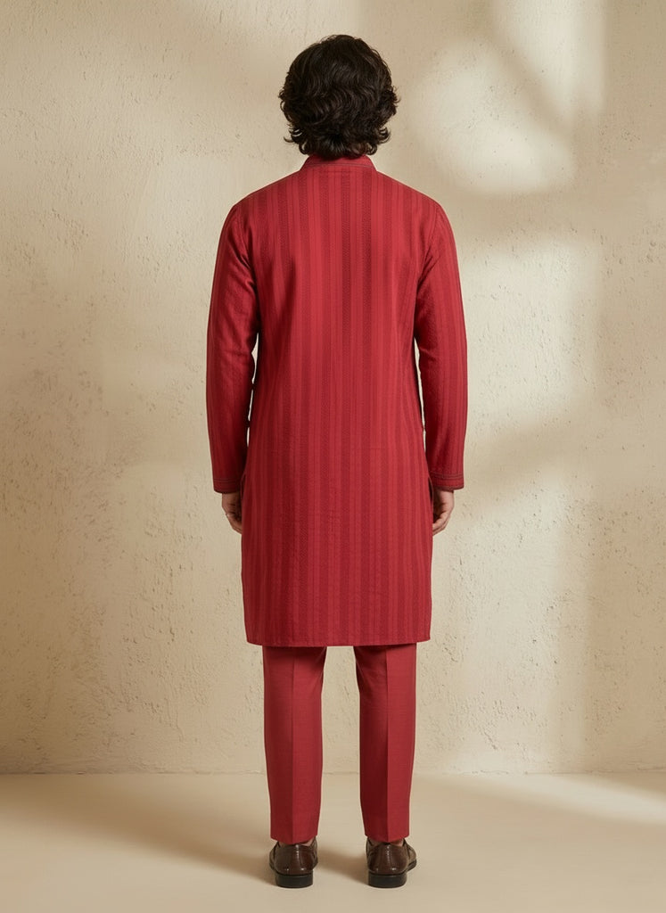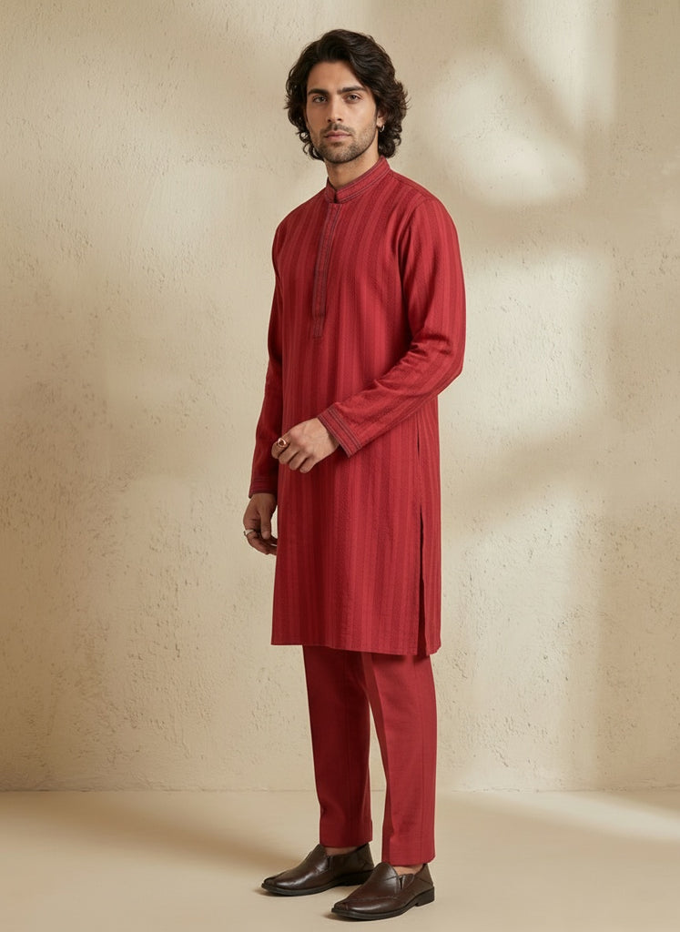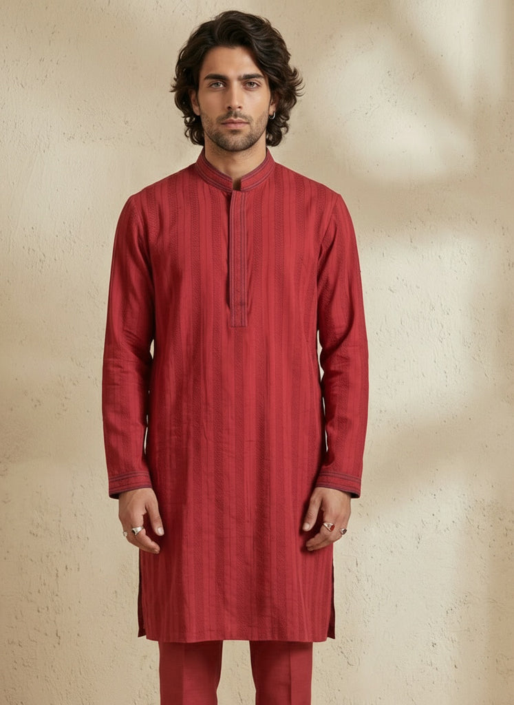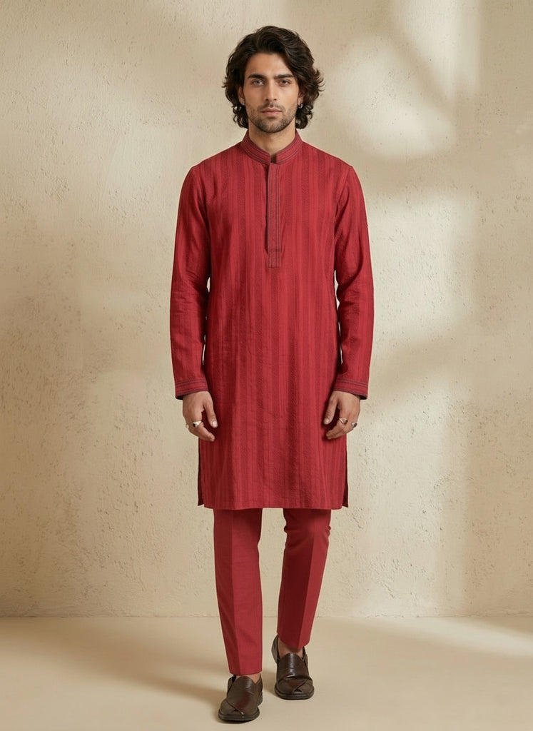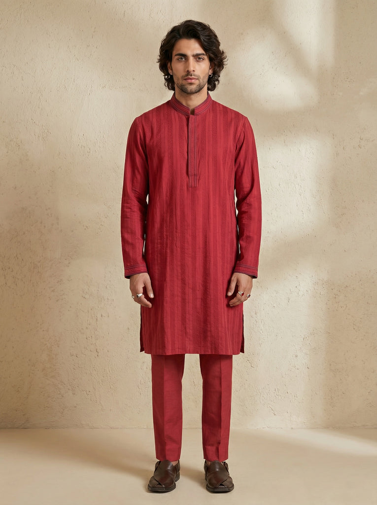 Maroon linear striped kurta pant set